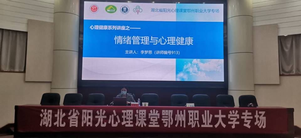 4月6日下午3:00,湖北省阳光心理科普宣讲团走进鄂州职业大学,为我校专职辅导员和21级心理委员开展《情绪管理与心理健康》为主题的阳光心理科普宣讲活动。