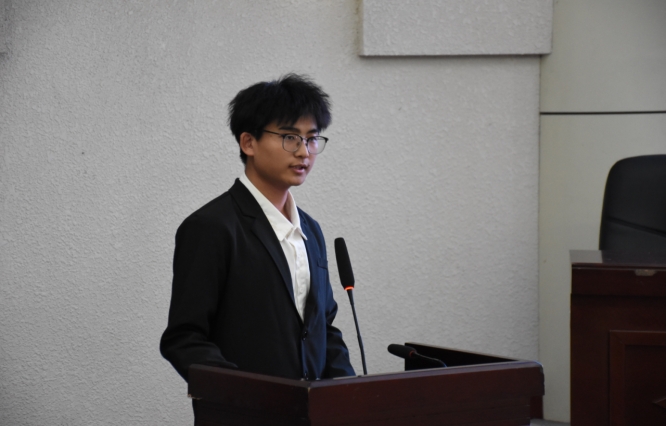 教育管理学院学生代表王鑫分享了“学生公寓安全用电知识竞赛”活动的成效以及后续的筹备方案。