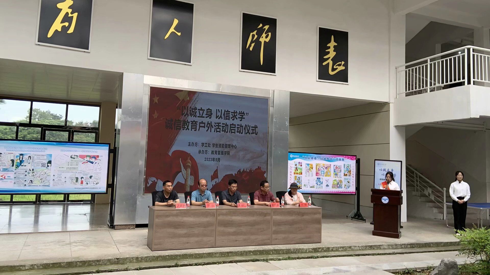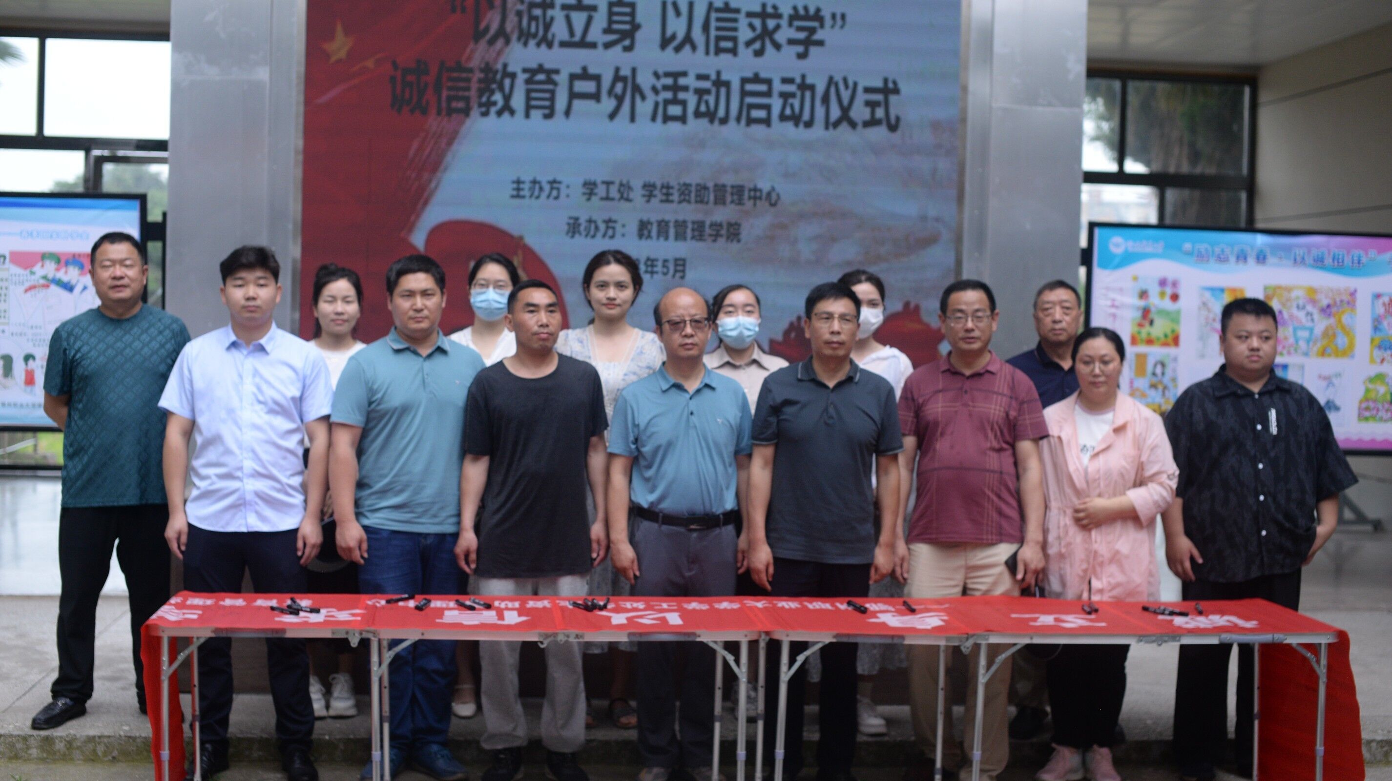 为深入贯彻“三全育人”及“资助育人”实践要求,大力开展诚信教育、征信和金融知识宣讲活动,加强对受助学生的思想教育、诚信教育和社会责任感教育,通过示范带动和典型引领,大力倡导履约践诺精神。531日上午在教育管理学院二号教学楼开展“以诚立身 以信求学”诚信教育户外活动启动仪式。活动由学工处学生资助管理中心组织、教育管理学院承办。学工处处长陈永红、教育管理院长陈适、教育管理学院党总支书记瞿信柏、党总支副书记吕婷、学工处副处长刘真喜、教育管理学院全体辅导员老师、各院部资助管理老师代表及学生代表参加此次活动。