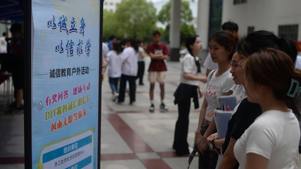 “以诚立身 以信求学”诚信教育户外活动于5月31日上午在三号教学楼正式拉开序幕。本次活动设置四个环节:“资助政策我宣讲”、“诚信签名”、“有奖小问答”和“DIY我的诚信明信片”。