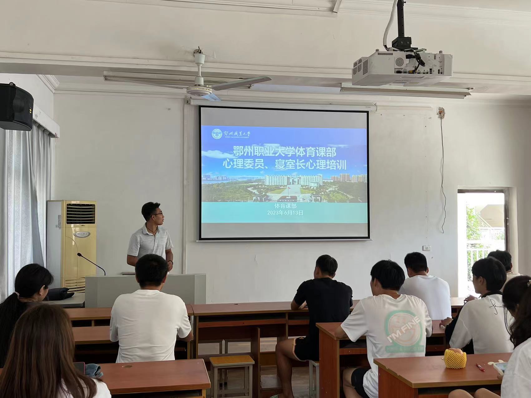 为扎实推进我系学生干部队伍建设,提高心理委员、寝室长专业素养与能力,体育课部在2023年6月13日开展了“心理委员、寝室长专题培训”。体育课部主任书记熊志超、副书记高国志、副主任谢义群参加了本次会议,培训由团总支书记余昊主持。参加此次专题培训的对象是21级、22级全体心理委员、宿舍长以及其他学生干部。