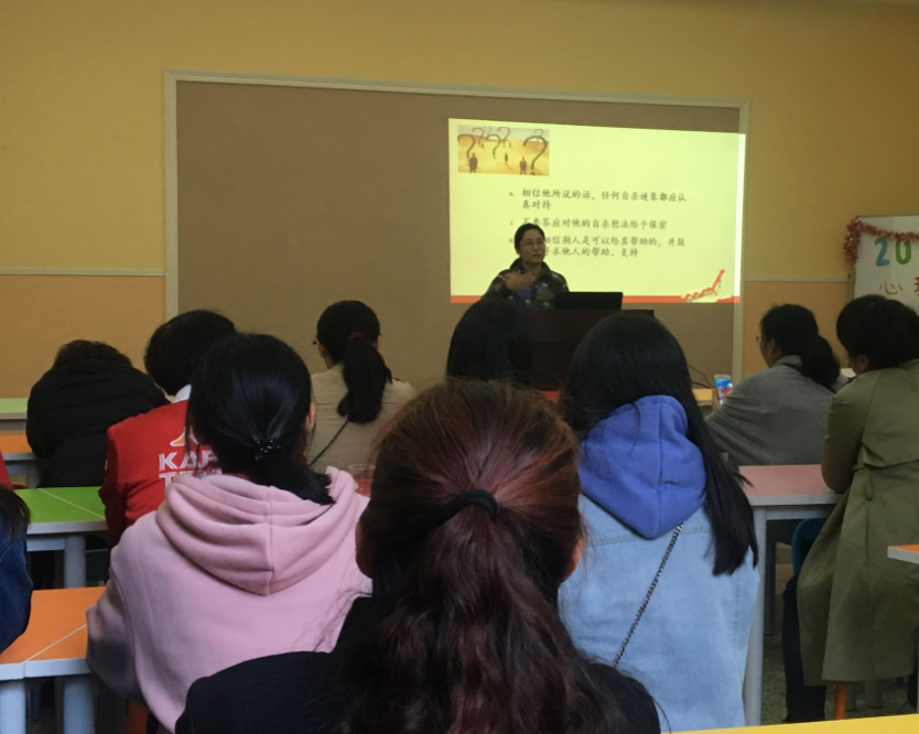 为提高兼职心理咨询师、校园安保人员、宿舍管理员、图书馆工作人员、后勤服务人员对心理危机预防的敏锐度,十月份,心理中心开展关于“危机干预、自杀预防”四场讲座。本次讲座由心理健康教育中心教师朱晓静主讲。