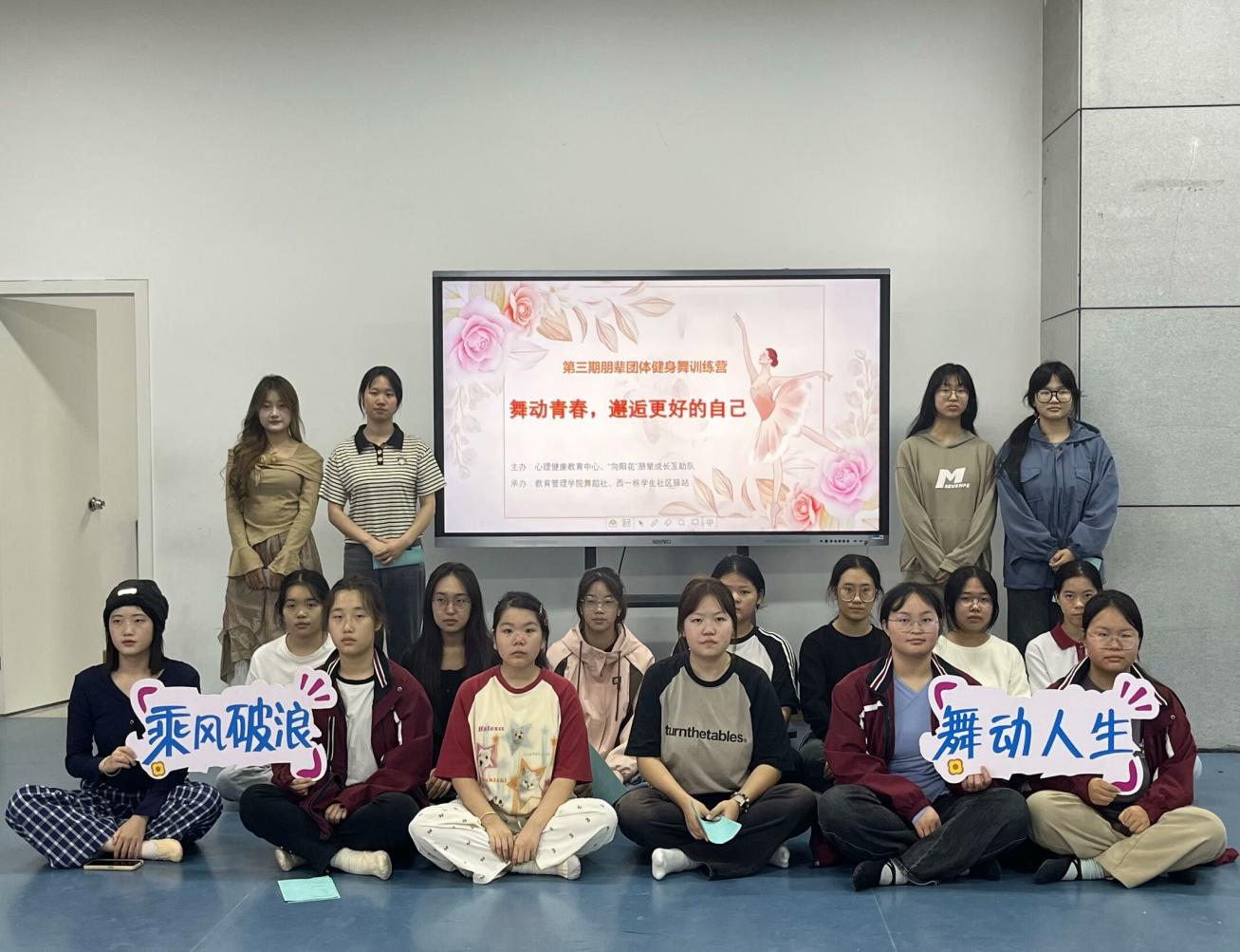 (通讯员:姚彬)在这个充满活力的时代,舞蹈作为一种交际的手段和展现自我、释放自我的方式已经被越来越多的人所接受。为了丰富大学生的课余文化生活,展示当代大学生青春风采,增进同学间的友谊和联系,10月18日由学工处心理健康教育中心、“向阳花”朋辈成长互助队、教育管理学院、西一栋“一站式”学生社区党支部联合举办的第三期朋辈团体健身舞训练营启动仪式在大学生活动中心舞蹈室如期举行。