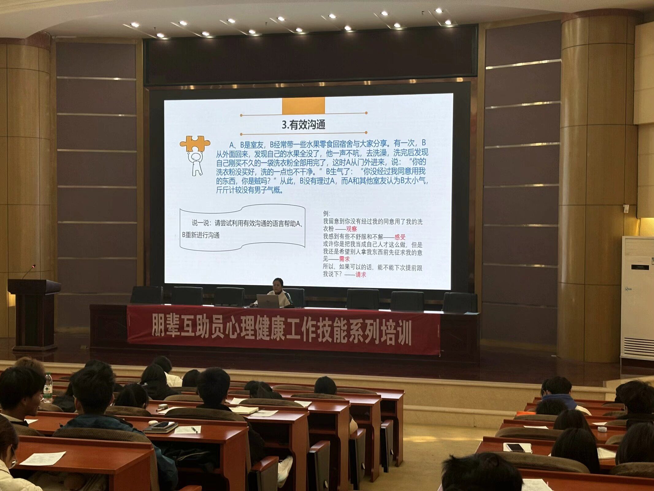 本次培训为同学们提供了宿舍人际交往指导和宿舍心理危机干预工作要点,有助于同学们更好地处理宿舍关系,营造和谐温馨的宿舍氛围。
