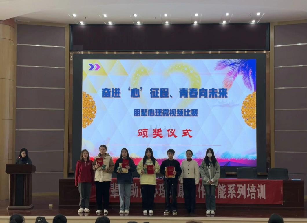 (通讯员:彭芳、曹姝)学工处心理健康教育中心举办的“奋进‘心’征程、青春向未来”朋辈心理微视频比赛于11月28日落下帷幕,并在五号楼学术报告厅举行颁奖典礼,来自各院部学生代表观看了优秀作品展播。