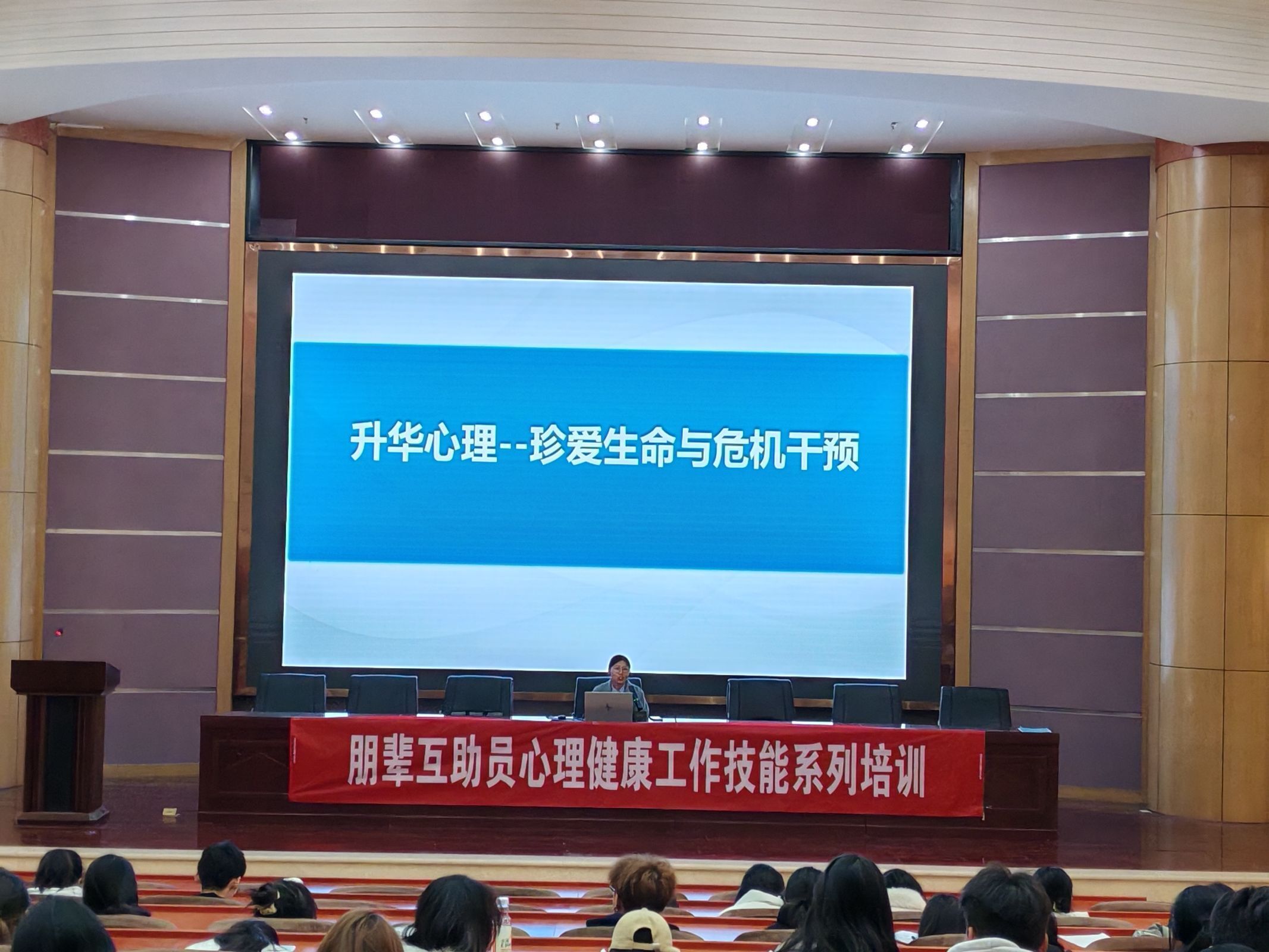 11月28日下午,学工处心理健康教育中心在五号楼学术报告厅开展本学期第四场朋辈互助员心理健康知识培训——“珍爱生命、危机干预”,本次培训由心理健康教育中心专职教师卢玉主讲,对象为2024级各班班长。