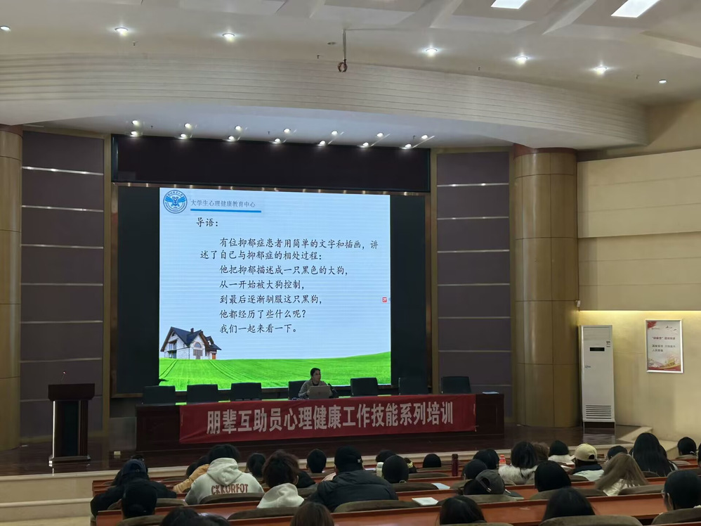 11月28日下午,学工处心理健康教育中心在五号楼学术报告厅开展本学期朋辈互助员心理健康知识培训第二场—心理小卫士,本次培训由心理健康教育中心专职教师朱晓静主讲,对象为2024级各班班长。