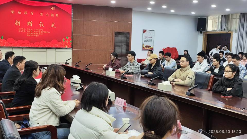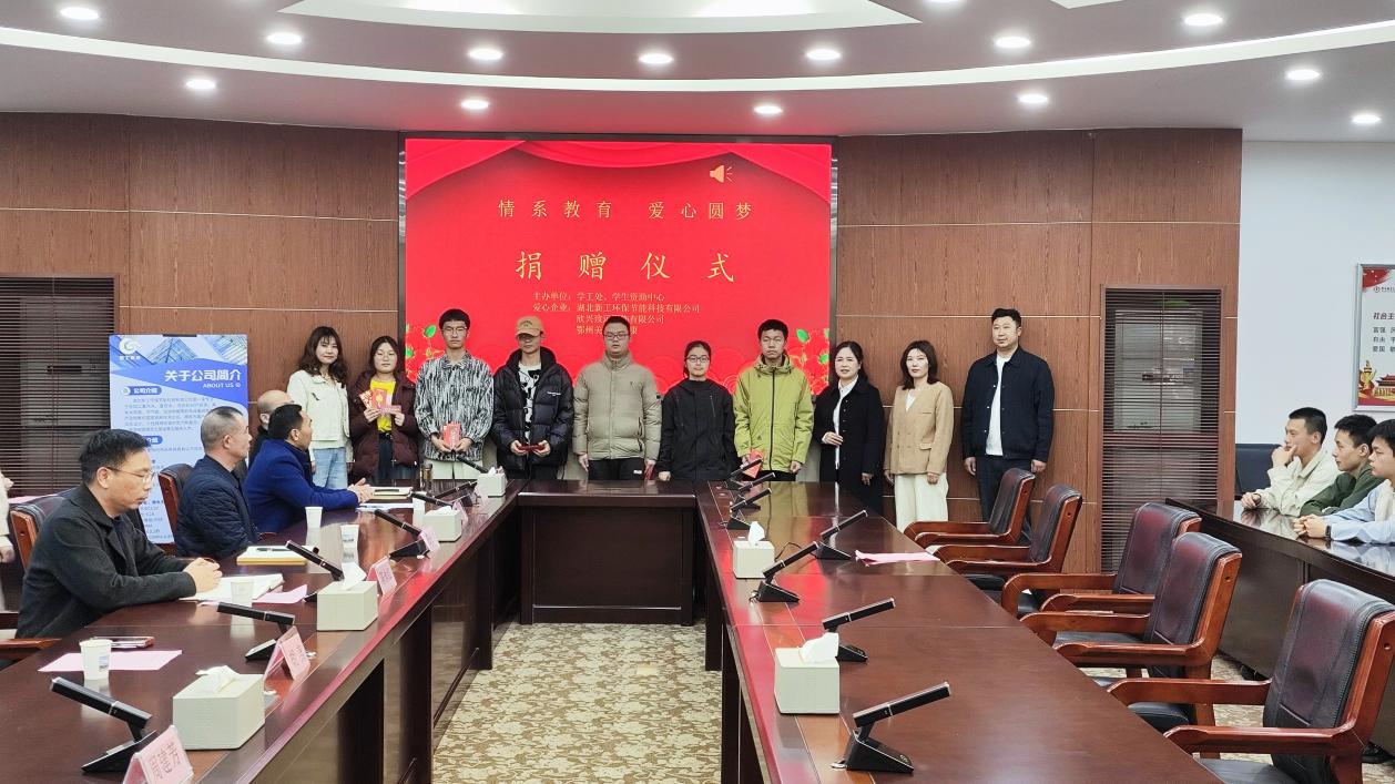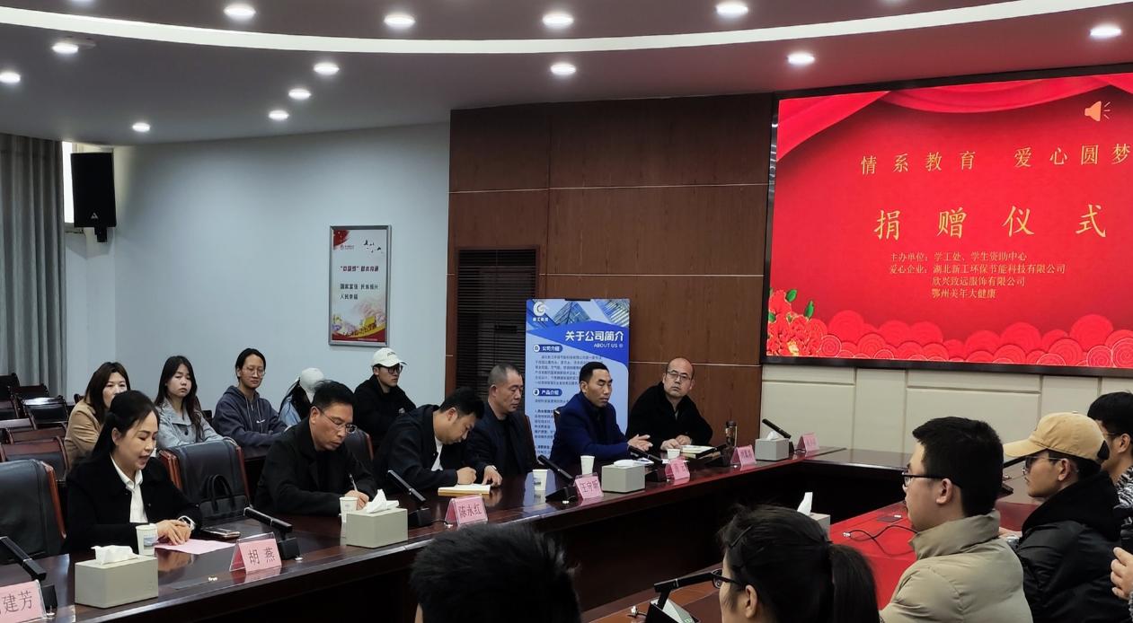 3月20日下午,“情系教育,爱心圆梦”捐赠仪式在校图书馆一楼会议室隆重举行。本次活动由学工处主办,学生资助中心协办,旨在通过爱心捐赠帮助我校家庭经济困难学生,传递社会正能量。学工处处长、副处长、后勤基建处及资产处副处长、学生资助中心老师以及爱心企业湖北新工环保节能科技有限公司、欣兴致远服饰有限公司、鄂州美年大健康代表出席了仪式。