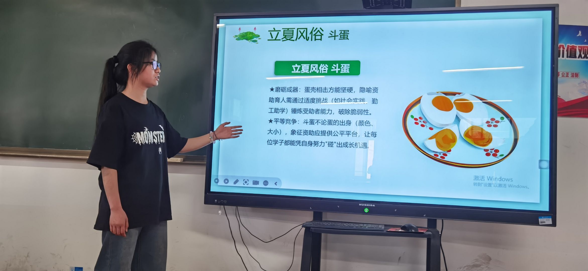 活动伊始,“微光课堂”为同学们带来了一场别开生面的文化科普。此次“微光课堂”由学生资助宣传大使黄双红作为主讲人,黄双红从立夏节气的起源、习俗入手,引申至资助育人应培养受助者感恩之心,鼓励其反哺社会,形成“受助-自助-助人”的良性循环,同时在立夏知识的讲解中结合学生资助政策,阐述资助如夏阳,温暖求学路”的育人理念。课堂通过生动的案例和互动问答,让同学们在了解传统文化的同时,深刻感受到国家资助政策的关怀与支持。