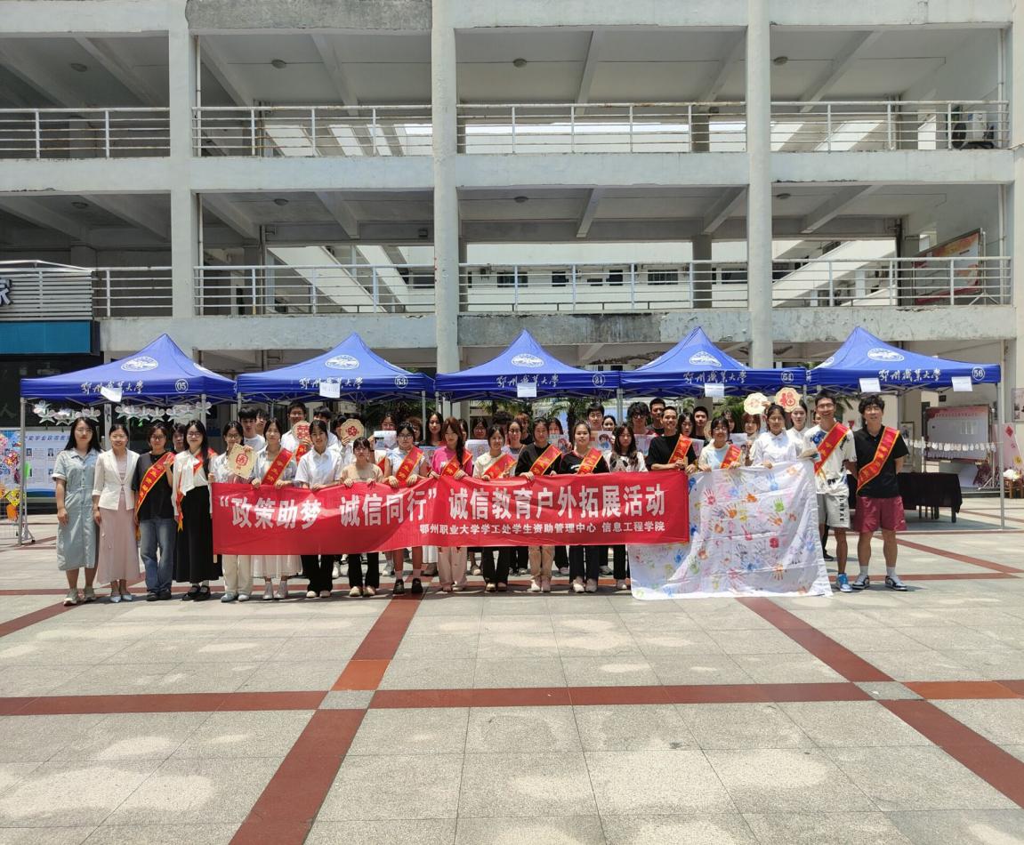 为深入落实 “三全育人” 及 “资助育人” 实践要求,充分发挥学生资助工作的育人效能,5 27 日上午,一场别开生面的 “政策助梦 诚信同行” 诚信教育户外拓展活动在3号教学楼 1 楼天井处火热开展。学工处学生资助管理中心、信息工程学院、各院部资助工作管理老师、学生资助宣传大使及众多学生齐聚一堂,共同参与这场集教育性、趣味性于一体的活动。