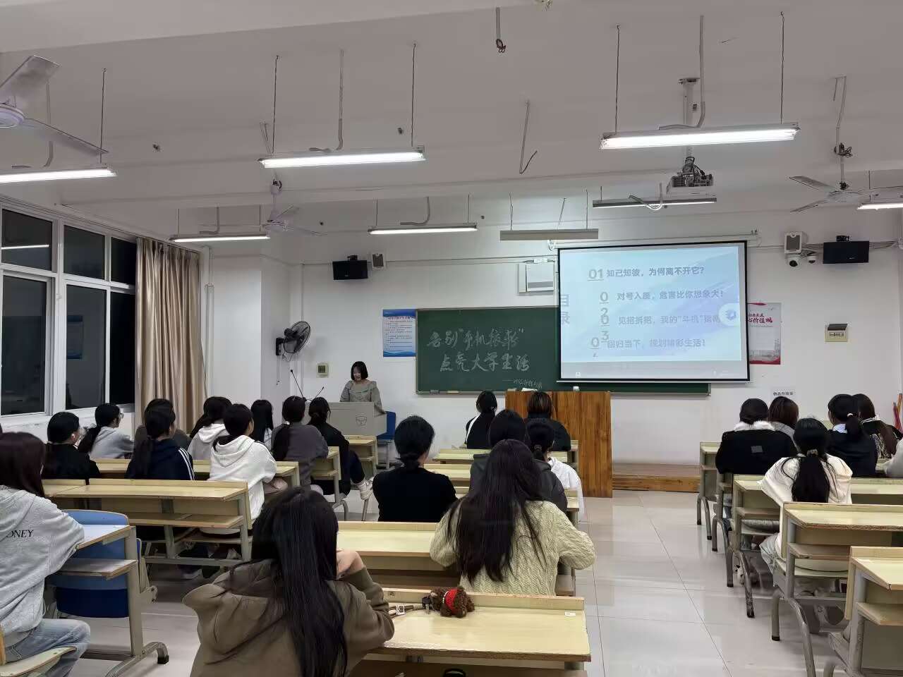 (通讯员:祝茉淑)为帮助大学生摆脱手机依赖困扰,重拾充实校园生活,近日,学工处心理健康教育中心聚焦学生心理健康与成长需求,以“告别手机依赖,点亮大学生活”为主题组织全体在校学生开展心理主题班会,本次班会通过剖析问题、分享方法、规划未来,为同学们搭建起认知与行动的桥梁,赢得广泛好评。
