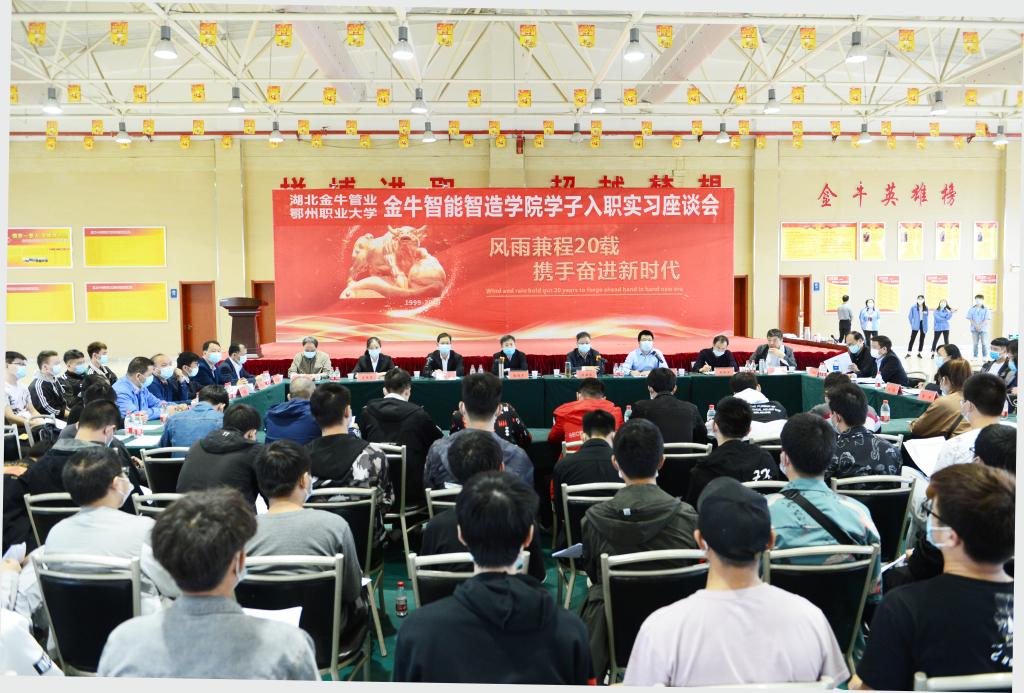9月21日,我校金牛智能智造学院机械设计与制造、模具设计与制造、机电一体化技术、数控技术四个专业的74名学生正式入职金牛管业顶岗实习,开启“在校生”到“职场人”的角色转变。校党委书记万国光、金牛管业总经理程得才出席顶岗实迎新座谈会。金牛管业相关负责人、我校机械工程学院教师及实习学生参加了座谈会。