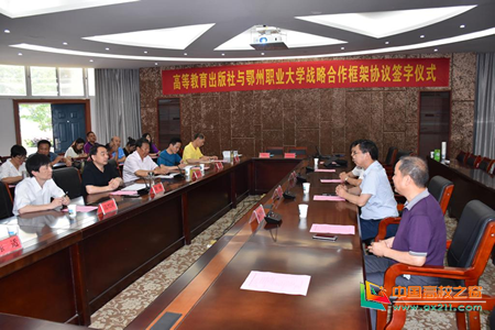 6月26日,鄂州职业大学与高等教育出版社战略合作协议签约仪式在图书馆一楼会议室举行。校长周峰与高等职业教育事业部主任徐刚代表双方签订合作协议书。高等职业教育事业部副主任段博原、华南区教学服务中心主任张怀福出席,副校长杨殿生主持仪式。