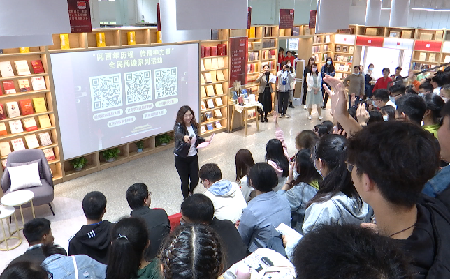 随后,师生们来到鄂州职业大学图书馆倍阅书店开展阅读学习党史活动,并现场进行党史知识有奖竞答。师生们在抢答中一同回顾中国共产党百年征程,颂扬建党百年伟业。据悉,接下来还有红色诗歌家书朗诵、书评影评大赛、微视频朗诵大赛等活动内容。