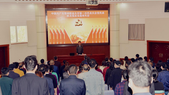 4月23日下午,机关党总支召开全体党员大会,推选出席鄂州职业大学第一次党代会党代表。校党委书记万国光,党委副书记周岫,党委副书记、副校长王家绪,纪委书记严莉等与机关总支全体党员一同参加会议,会议由王家绪主持。