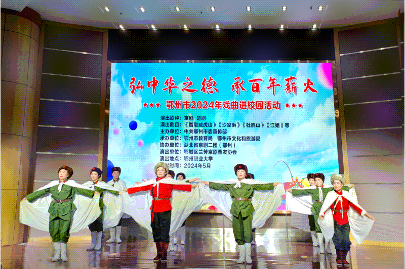 由市委宣传部主办,市教育局、文化和旅游局承办,湖北省京剧二团协办的“戏曲进校园”活动在我校五号楼二楼学术报告厅精彩上演,来自鄂城区兰芳京剧票友协会的戏曲艺术家们为师生们呈现了一场精彩绝伦的戏曲盛宴。