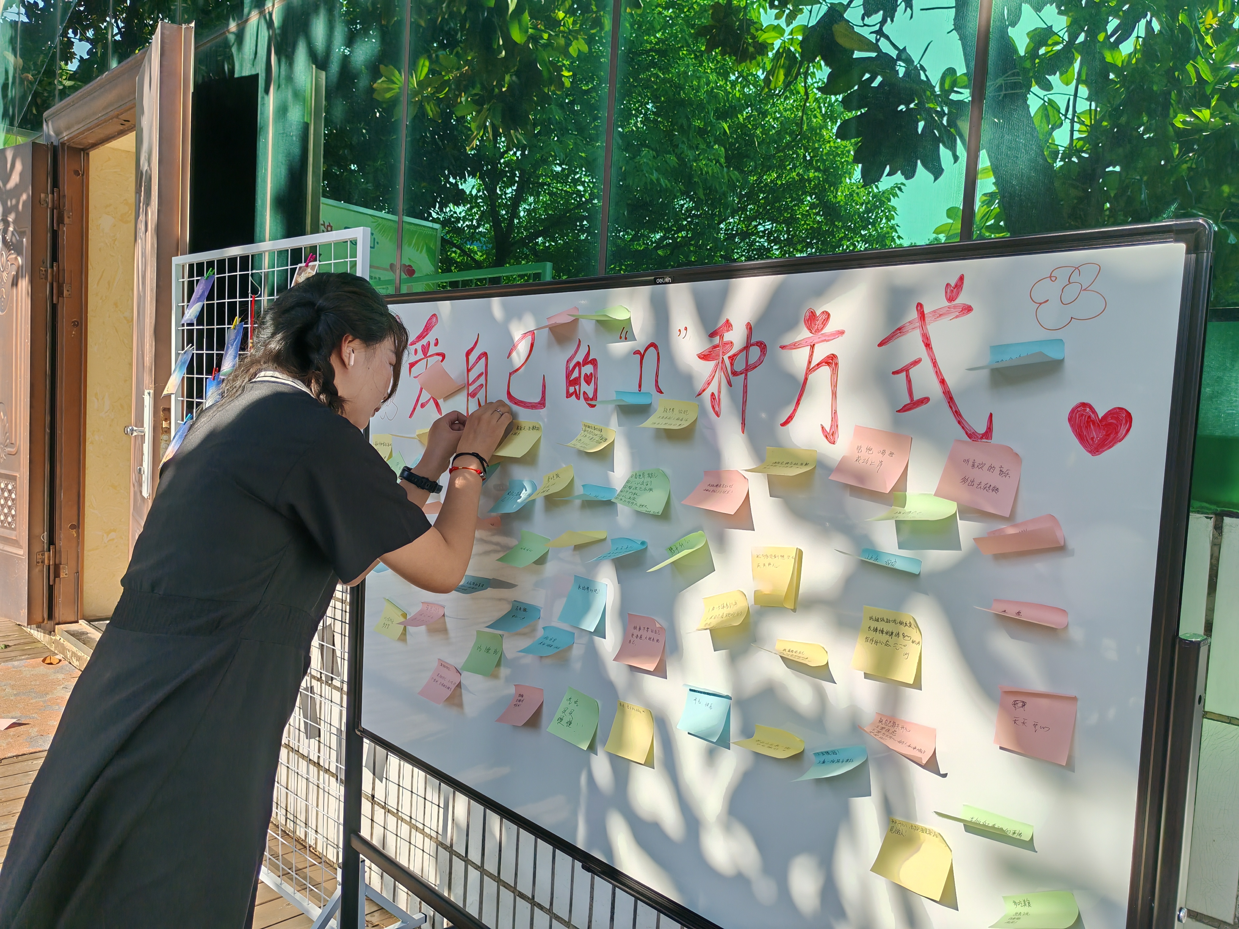在创作体验中,同学们通过绘制笑脸图片、写下“爱自己的N种方式”体验愉悦的情绪,也在这种相互交流和分享中,学会“如何爱自己”。