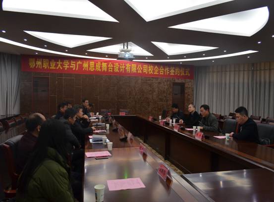 本报服装与艺术学院消息 3月27日上午,我校与广州思成舞台设计有限公司在校图书馆一楼会议室签约,合作成立混合所有的鄂州职业大学“思成舞台设计与制作学院”。这是我校整合社会资源、拓展育才渠道、创新成才模式的又一力措,校长洪贞银,副校长卫杨春、张家文等出席签约仪式。