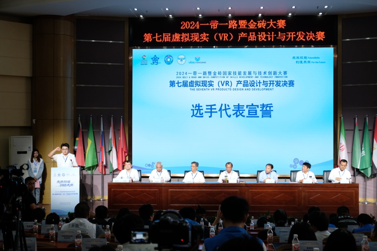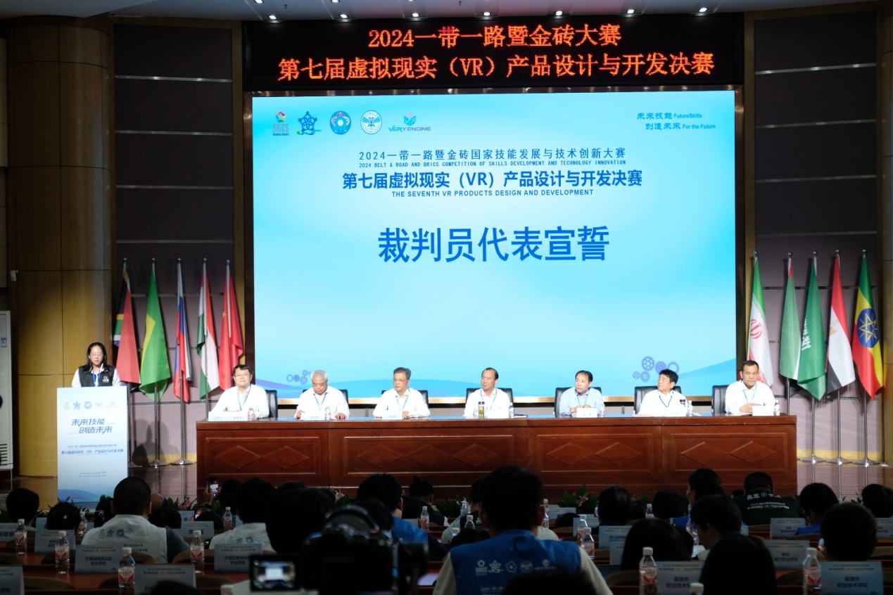 据悉,2024一带一路暨金砖国家技能发展与技术创新大赛第七届虚拟现实(VR)产品设计与开发决赛由金砖国家工商理事会中方理事会、一带一路暨金砖国家技能发展国际联盟、中国科协一带一路暨金砖国家技能发展与技术创新培训中心主办,中国发明协会、教育部中外人文交流中心联合主办,金砖国家工商理事会技能发展、应用技术与创新中方工作组承办,鄂州职业大学、杭州万维镜像科技有限公司、北京企学研教育科技研究院、北京嘉克新兴科技有限公司、厦门市金砖未来技能发展与技术创新研究院联合承办。