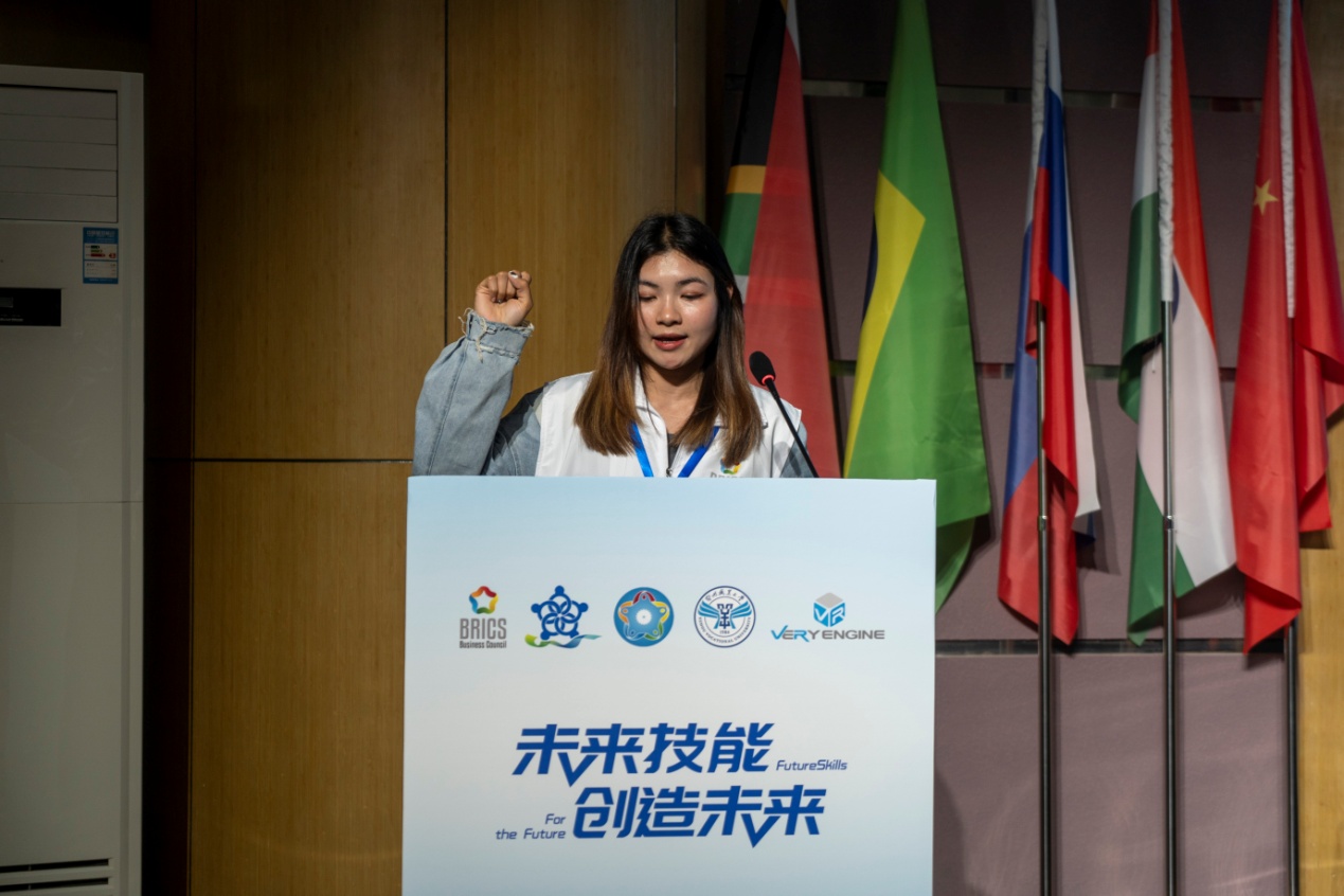 一带一路暨金砖国家技能发展国际联盟理事长、金砖国家技能发展与技术创新大赛组委会执委会主席刘振英博士作了视频讲话。他表示,一带一路倡议为各国间的合作与发展带来了前所未有的机遇,金砖国家的合作机制也在不断深化拓展,虚拟现实产品设计与开发赛项作为一带一路暨金砖大赛机制下连续举办七届的赛项,对于加快VR技术的普及和应用、培养优秀的VR技术和技能人才,最终实现虚拟现实人人开发的新局面创造了条件。 金砖国家技能发展技术创新大赛是金砖五国最高领导人认可,在中华人民共和国外交部备案,是金砖国家工商理事会、各国技能发展应用创新、应用技术与创新工作组共同实施的重要竞赛成果,也是促进金砖国家间教育合作、技能开发、未来技能人才联合培养、创新技术最佳实践分享及人文交流的长效合作机制。 希望职业院校、合作伙伴能够积极参与金砖技能发展与技术创新工作组各项国际合作项目,深化国际产教融合,共同助力高水平教育对外开放。