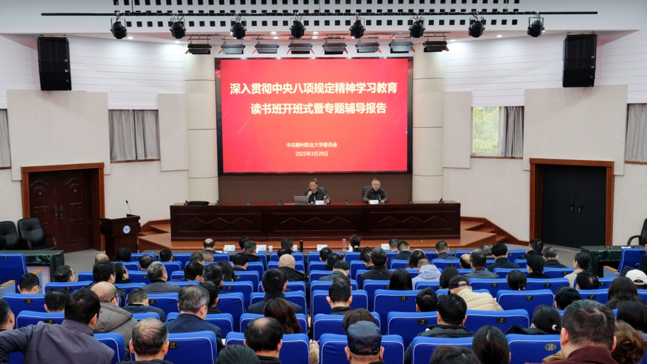 本网讯(记者 何建华 学生记者 刘畅)3月29日上午,我校校党委深入贯彻中央八项规定精神学习教育读书班在图书馆二楼学术报告厅开班。校党委书记万国光作首场专题辅导报告。读书班由党委副书记王家绪主持。