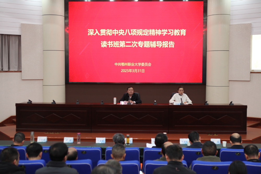 本网讯(记者 缑非凡)3月31日下午,校党委深入贯彻中央八项规定精神学习教育读书班第二次专题辅导报告在图书馆二楼报告厅举行,市纪委常委方舰应邀作专题辅导报告,校党委委员、纪委书记严莉主持会议并讲话。