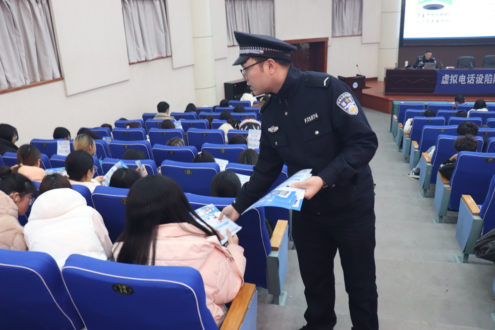鄂州市公安局凤凰派出所民警乔安群作为主讲人,围绕多种诈骗形式、手法及作案的特点进行了全方位预防电信诈骗讲解,通过不同的诈骗类型,归纳分析了冒充领导诈骗、冒充公检法诈骗、冒充客服诈骗、刷单扫码诈骗、婚恋交友诈骗等常见作案手段,使师生们对电信诈骗有了更进一步的认识。