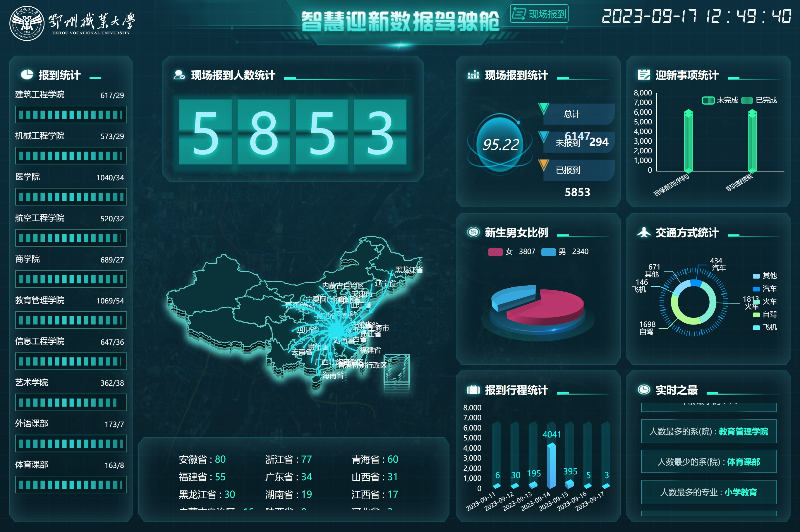 9月14日-15日,鄂州职业大学迎来了来自全国各地的2023级新生,该校大一新生共计6000余人,迎新工作为期两天,学生到校后几秒钟就完成了现场报到直达宿舍。迎新工作如此便捷,因为他们使用了“智慧迎新系统”。