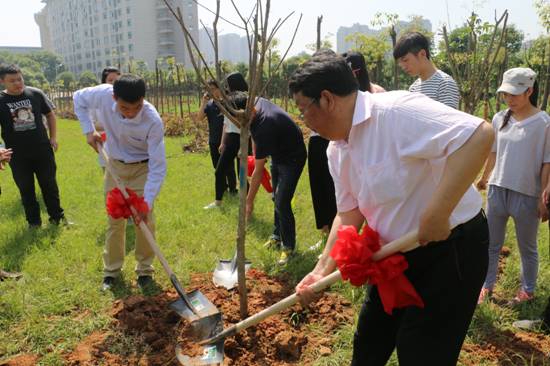 5月12日上午,应校友办邀请,鄂州职业大学知名校友:北京樱澍科技有限公司总经理付培利、上海至臻联合会计事务所主任会计师、执行合伙人孟岭、黄商贸易股份有限公司副总经理项细军回到母校。校长洪贞银、校党委副书记周岫、副校长杨殿生亲切的接见了校友,并与校友共同栽植了由三名校友捐赠的鄂州职业大学首片“校友林”。计算机学院、商学院部分师生及学校相关处室负责人三十多人参加了“校友林”揭牌活动。