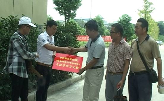 7月27号,在我校校友杜高山(98财会)倡导下,浙江省台州湖北商会(筹备组)一行,献爱心来到鄂州职业大学,捐资三万元资助我校受灾学生。