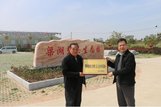 3月23日,我校校友会常务副会长、副校长胡海平与我市梁子湖区绿色食品开发有限公司总经理、我校知名校友杨裕才在梁湖碧玉生态园为“鄂州职业大学校友企业校企合作基地”挂牌。双方就校企合作的具体事项达成了多项意向性协议。
