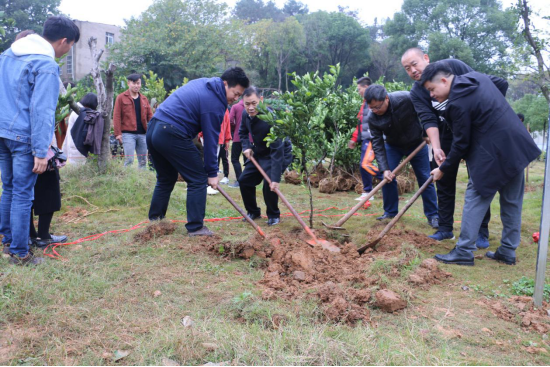16日上午十时,学校校友会在机械工程学院的空地上举行了既隆重又简朴的第二次校友林“胡柚园”揭牌仪式。校长、校友会会长洪贞银,副校长、校友会常务副会长胡海平,深圳校友会会长段君生、秘书长向剑锋,海南校友会副会长黎发志、常务副理事陈泽全共同为校友林“胡柚园”揭牌,并挥锹铲土共植胡柚苗。