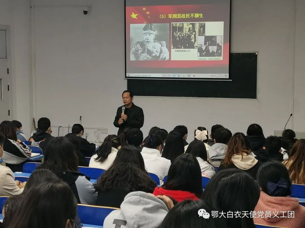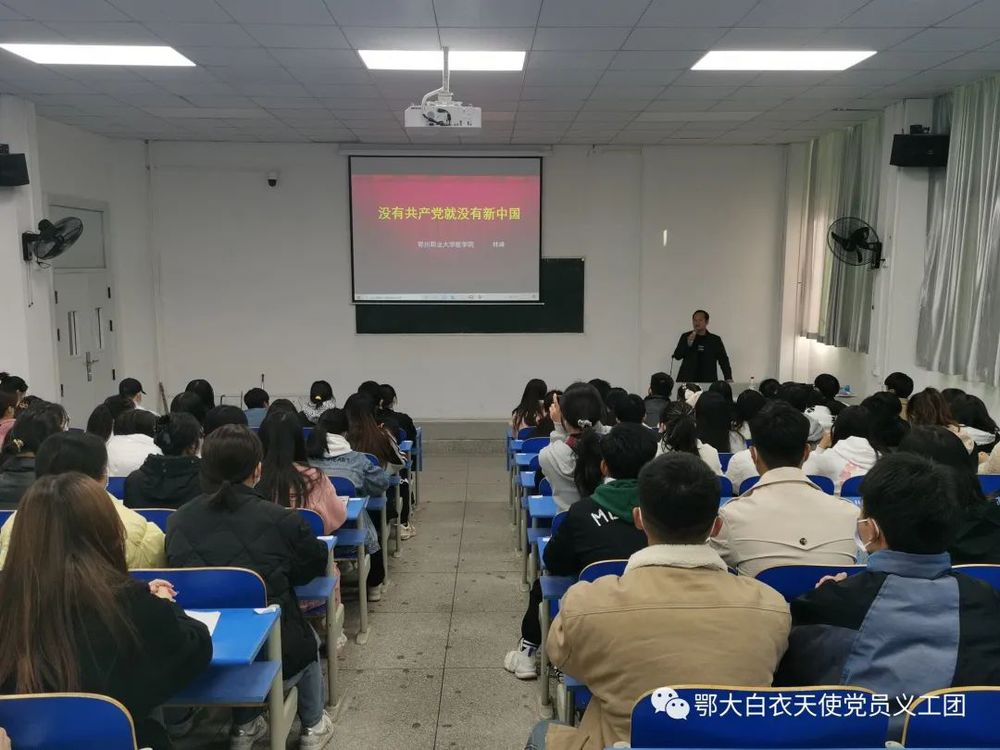 为弘扬党的伟大革命精神,发展党的伟大共产主义事业,坚定党的行动路线,强化党的政治建设。于12月2日下午,鄂州职业大学医学院四号楼阶梯二,由林峰副教授为主讲,开展了“没有共产党就没有新中国”的党课讲座,将党史以讲座的方式,对入党积极分子思想进行进一步强化,让他们正确的、客观地认识到“没有共产党就没有新中国”。