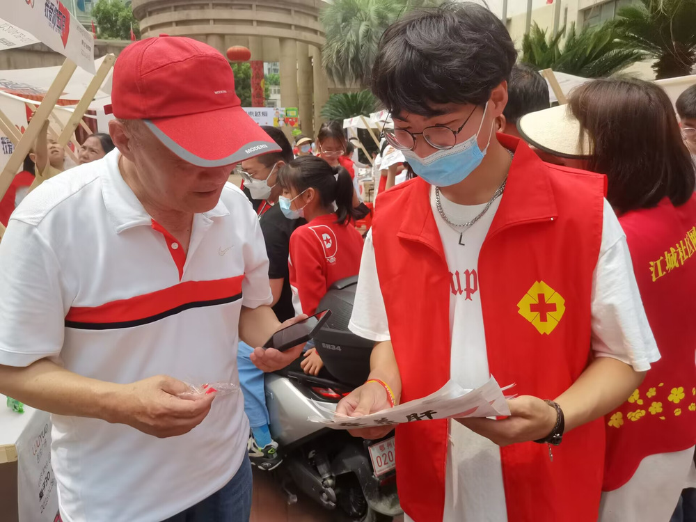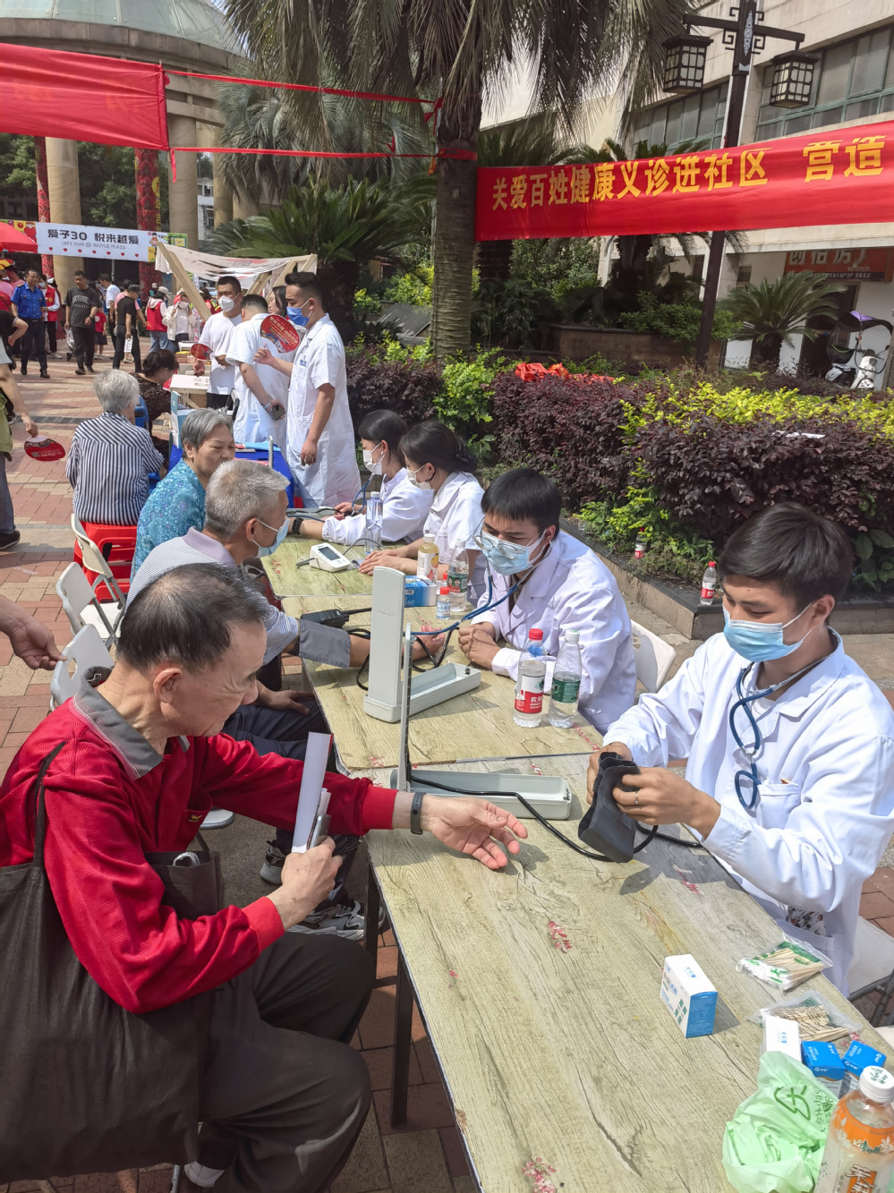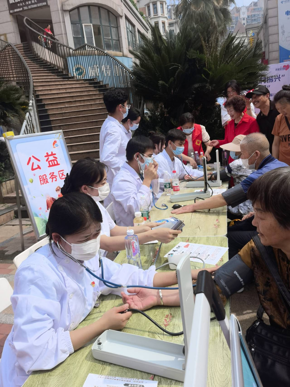 2023年5月20日鄂州职业大学疫路引航名班主任工作室联合医学院学生党支部和健康志愿守护队在鄂城区凤凰街道江城社区举办了一场志愿活动,通过测血压、测血糖,进行健康知识普及,为居民提供义诊服务,让广大群众享受便利服务,努力帮助他们树立健康的生活理念,增进民生福祉,使居民们从中感受到获得感、幸福感、安全感。