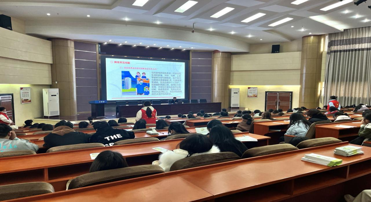 为了普及结核病防治知识,切实加强青年学生自我保护意识和预防肺结核防护知识,我校于12月29日,在求真楼报告厅开展了鄂州市百千万结核病防治知识传播志愿者培训讲座。此次活动由鄂州市卫生健康委员会联合鄂州职业大学“疫路引航”名班主任工作主办,我校两百多名师生参加了这次活动。