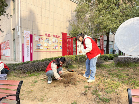 2024年3月11日,鄂州职业大学“疫路引航”名班主任工作室组织我校医学院“健康守护”志愿服务队,以植树节为契机在江城社区开展了以“春风催新绿,植树正当时”为主题的植树志愿活动。
