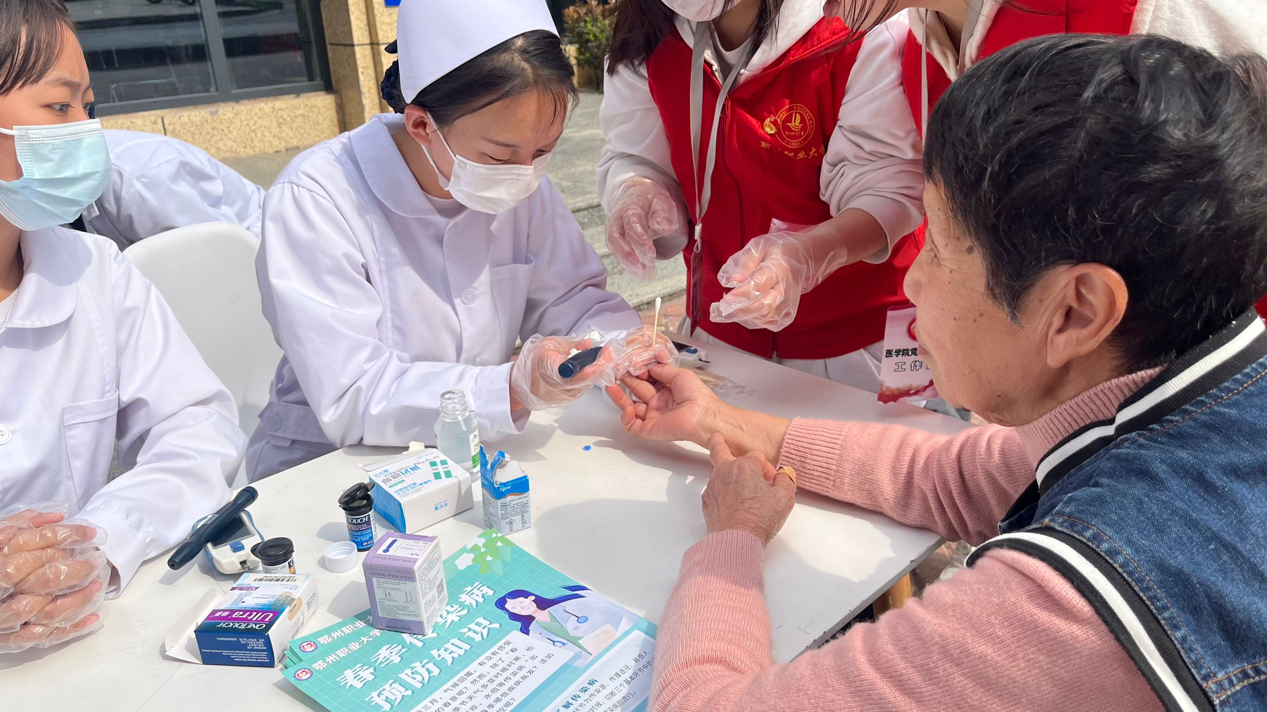 健康义诊主要面向中老年人,由护理支部老师及同学负责。学生志愿者进行量血压、测血糖等工作,护理支部老师根据老年人的血压血糖数据为其提供合理的饮食建议,有助于中老年人及早发现和治疗潜在健康问题,避免出现严重并发症。