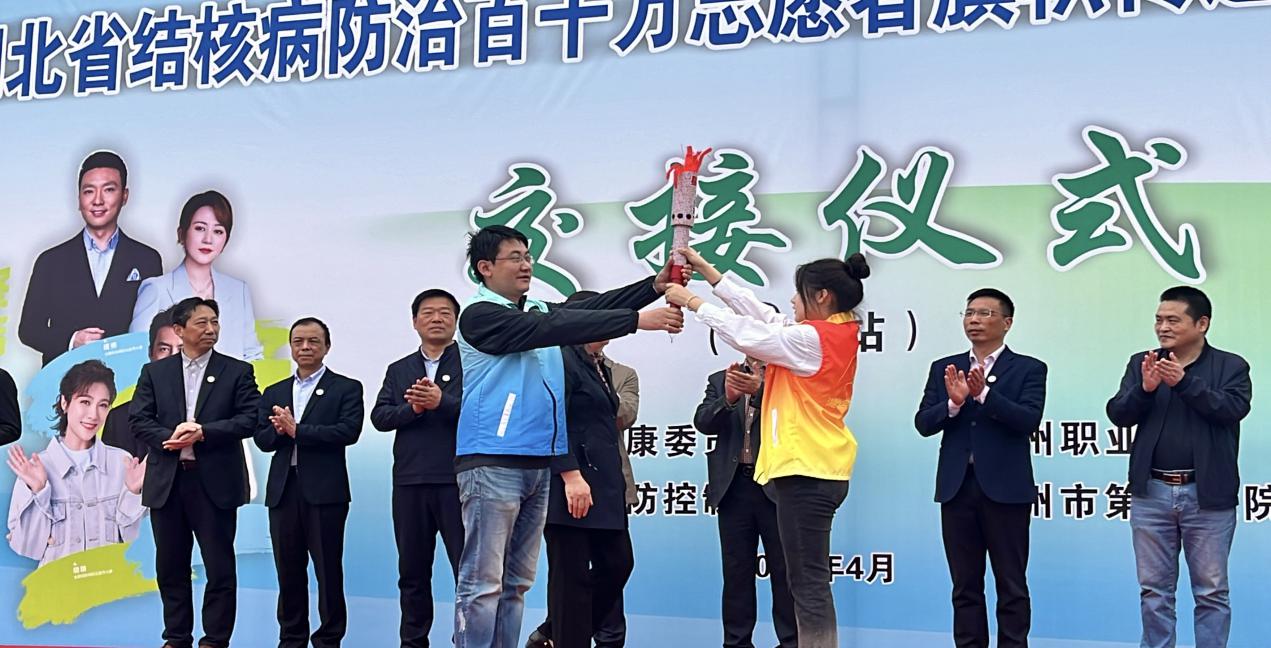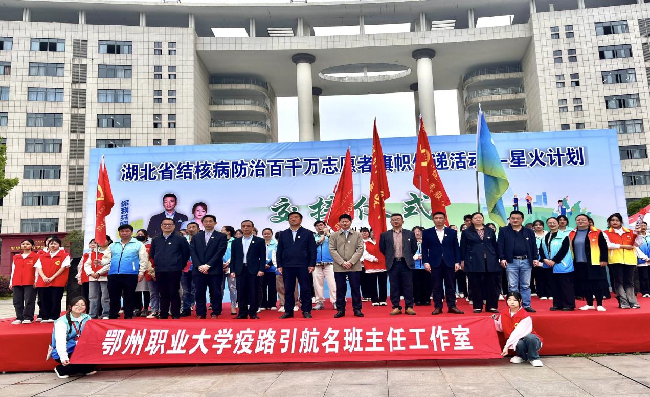 2024年4月12日上午10点,湖北省结核病防治百千万志愿者旗帜传递活动——“星火计划”旗帜及火炬交接仪式(鄂州站)在鄂州职业大学东校区南广场举行。