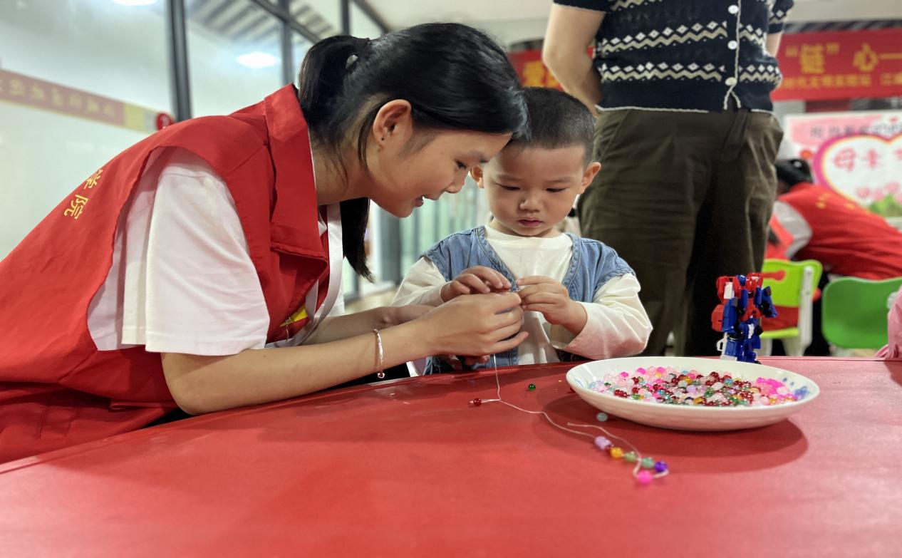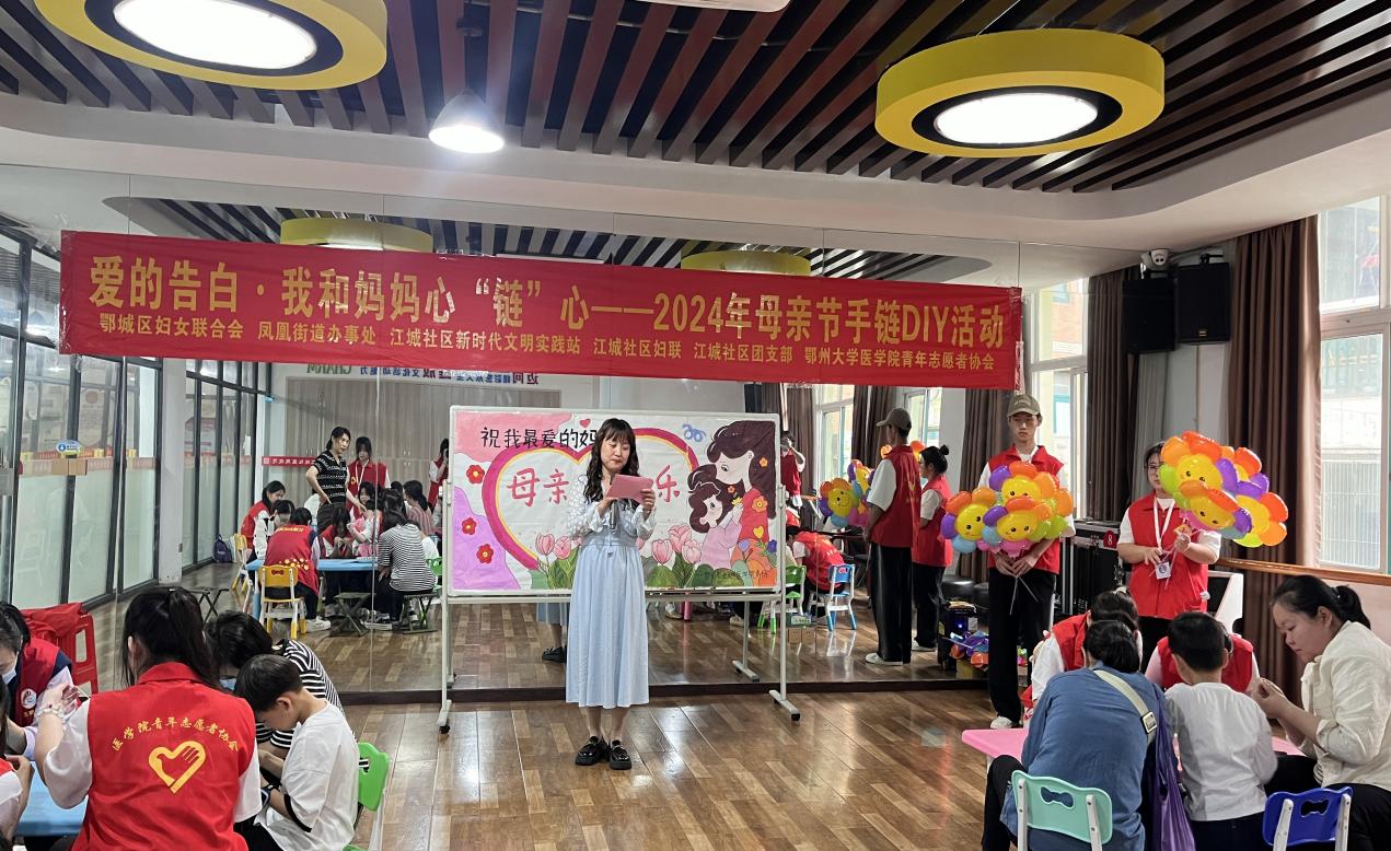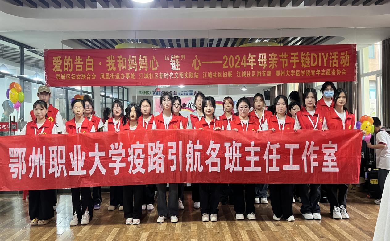 为了弘扬中华民族孝老爱亲的传统美德,丰富辖区居民精神文化生活,营造感恩母亲的温馨环境,2024年5月11日,江城社区新时代文明实践站联合社区妇联、社区团支部、鄂州职业大学“疫路领航”名班主任工作室在江城社区开展”爱的告白·我和妈妈心‘链’心——母亲节手链DIY活动”。