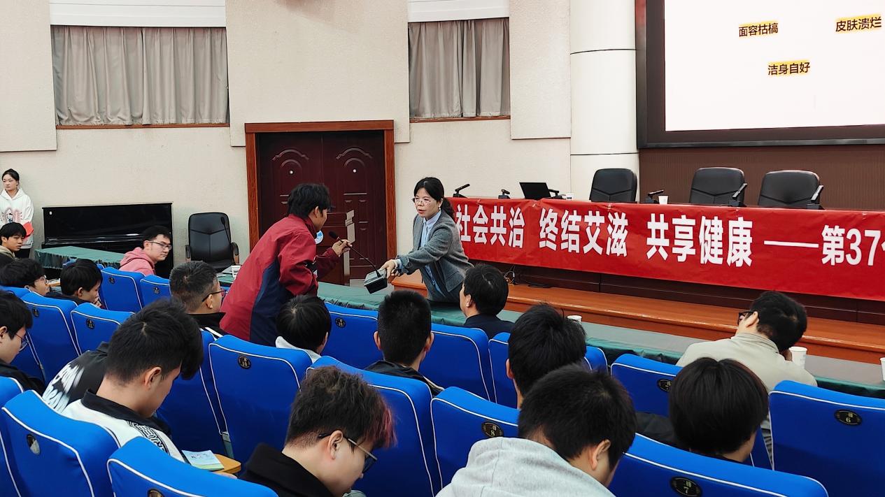 讲座由郭定芳老师率先开讲,她以“青春我懂艾”为主题,运用丰富的专业知识与生动的讲解技巧,系统阐述了艾滋病的起源、传播途径、发病机制及其对健康的严重危害。郭老师结合大量实际案例与数据,让同学们深刻意识到艾滋病的潜在威胁,进而强调了日常预防的关键要点,如正确使用安全套、规避不安全性行为等,为同学们提供了实用的防艾策略。