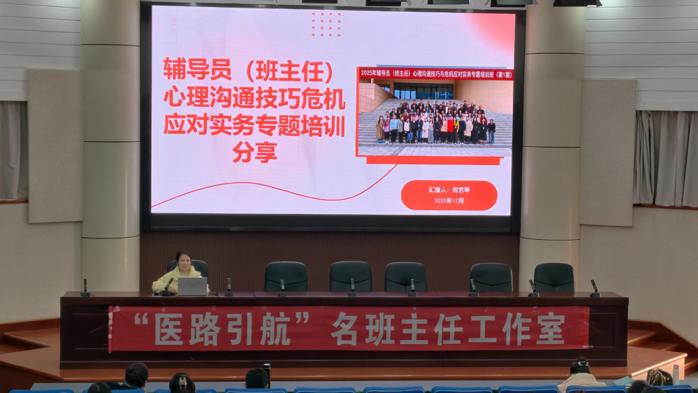 培训中,“医路领航”名班主任工作室的何艺琴老师为大家带来《心理沟通技巧危机应对实务专题培训》专题报告,并以此主题为中心与各辅导员进行积极讨论。辅导员作为学生心理健康教育的一线力量,需加强学生心理健康管理和心理隐患排查与疏导工作,从源头和根本上防范学生出现身心问题;同时要主动搭明确提出建家校沟通桥梁,与家长保持密切联系,凝聚家校共育合力,切实筑牢安全屏障,坚决杜绝学生意外事件发生。