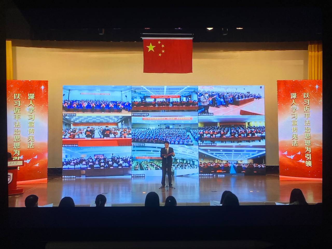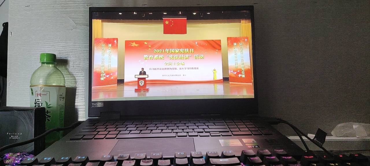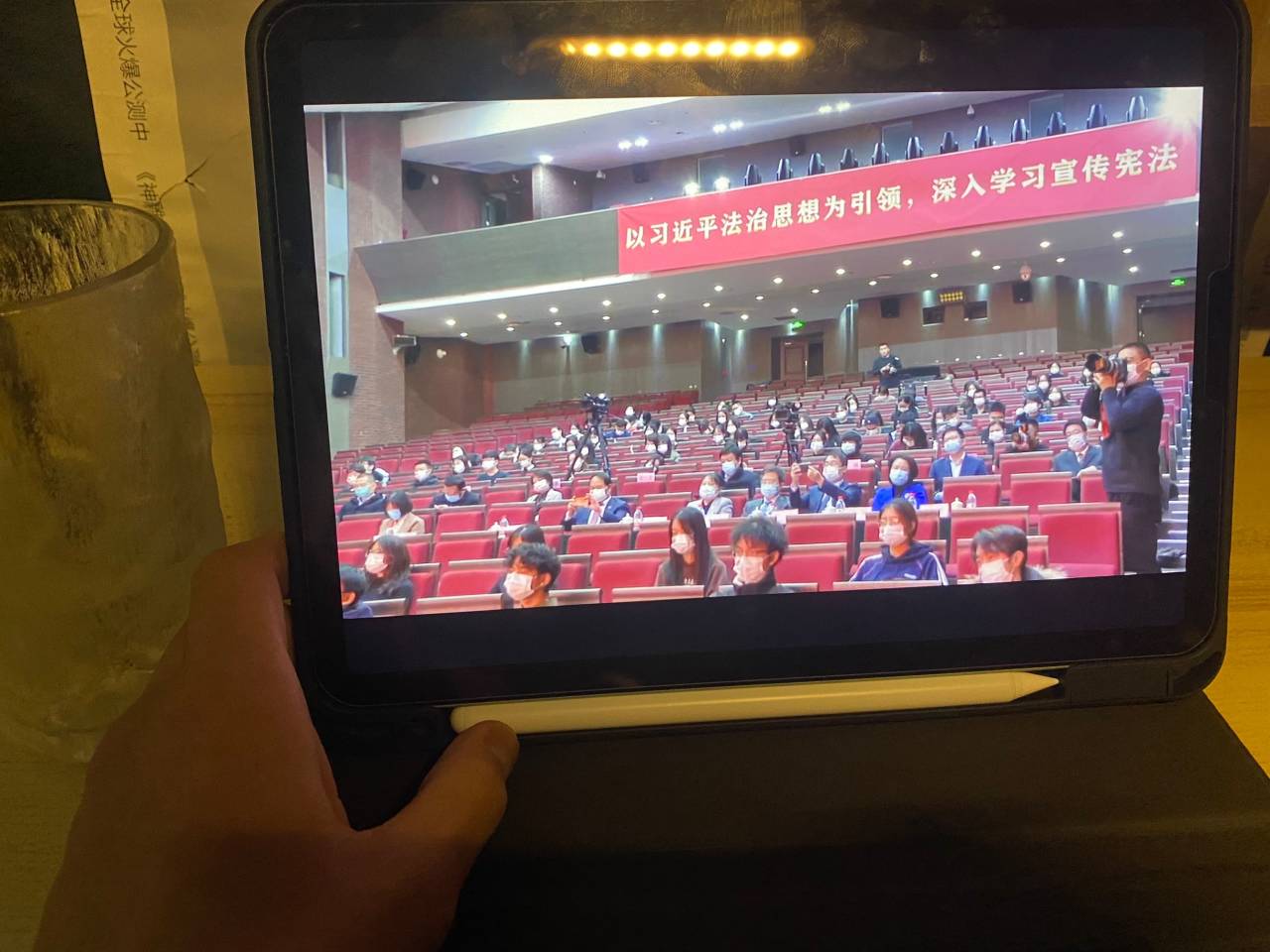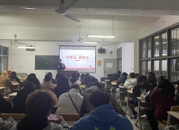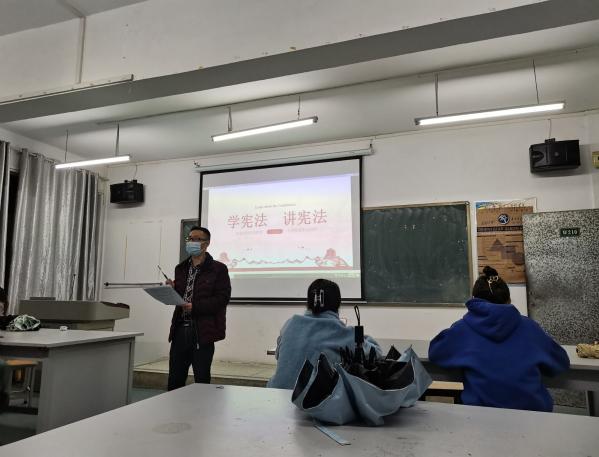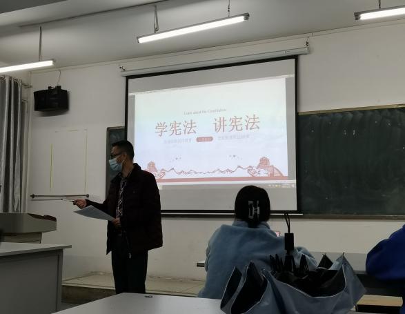 根据鄂州职业大学学工处《鄂州职业大学2021年宪法宣传周活动方案》文件精神,我院2021年12月3日组织86名学生通过青少年普法网收看网络直播,12月5日召开“学宪法,讲宪法”主题班会,班会由赵杰、姜维、王熠三位辅导员主讲,2020、2021级同学全体参与。