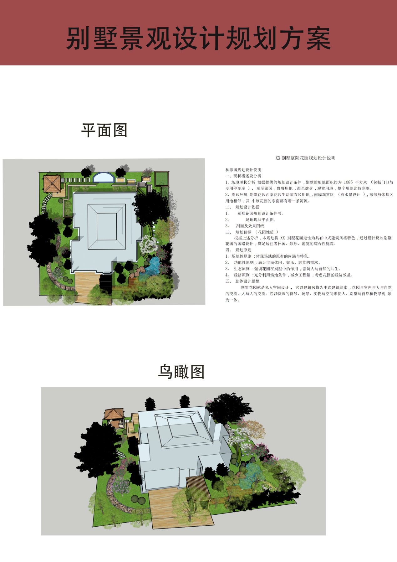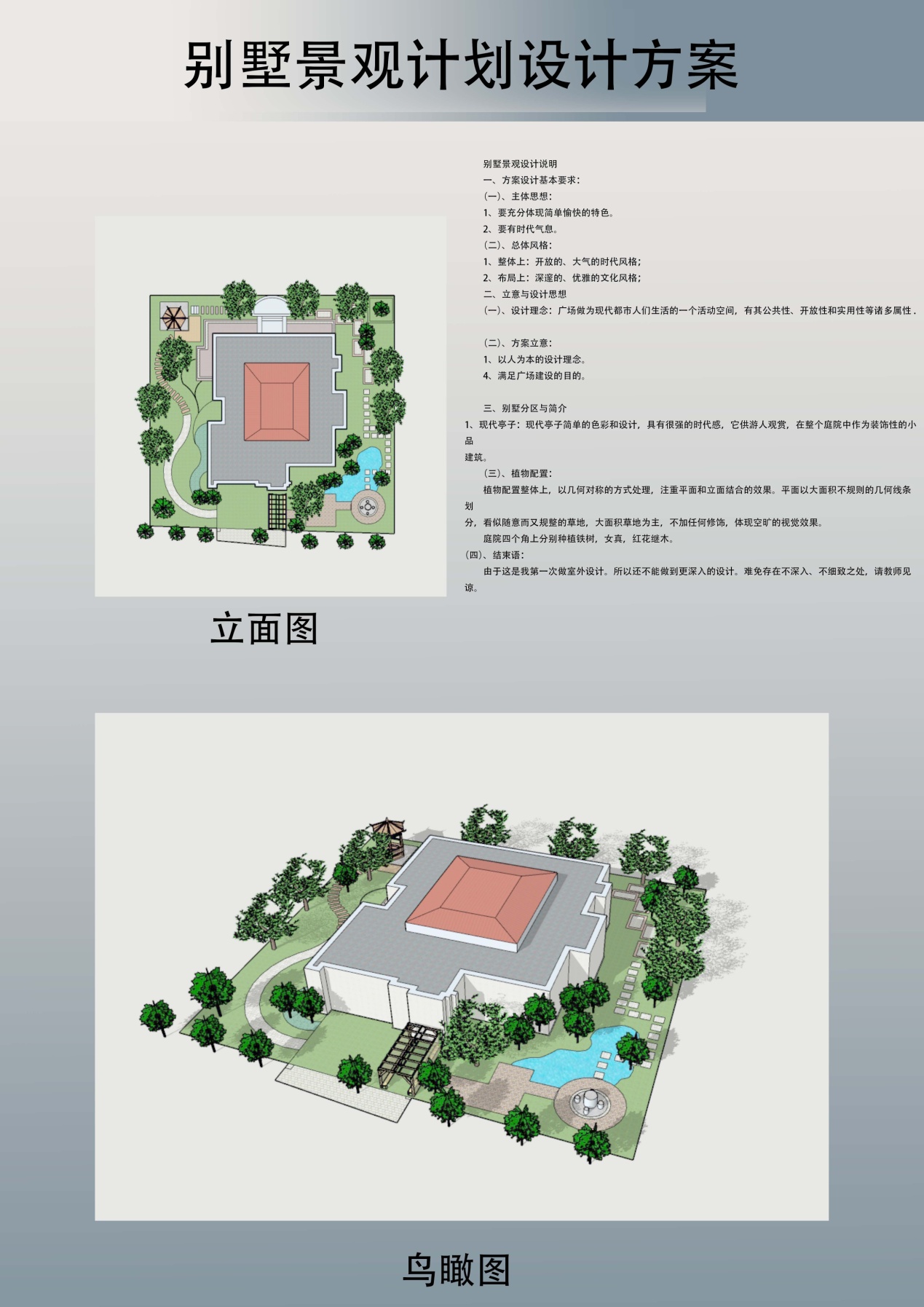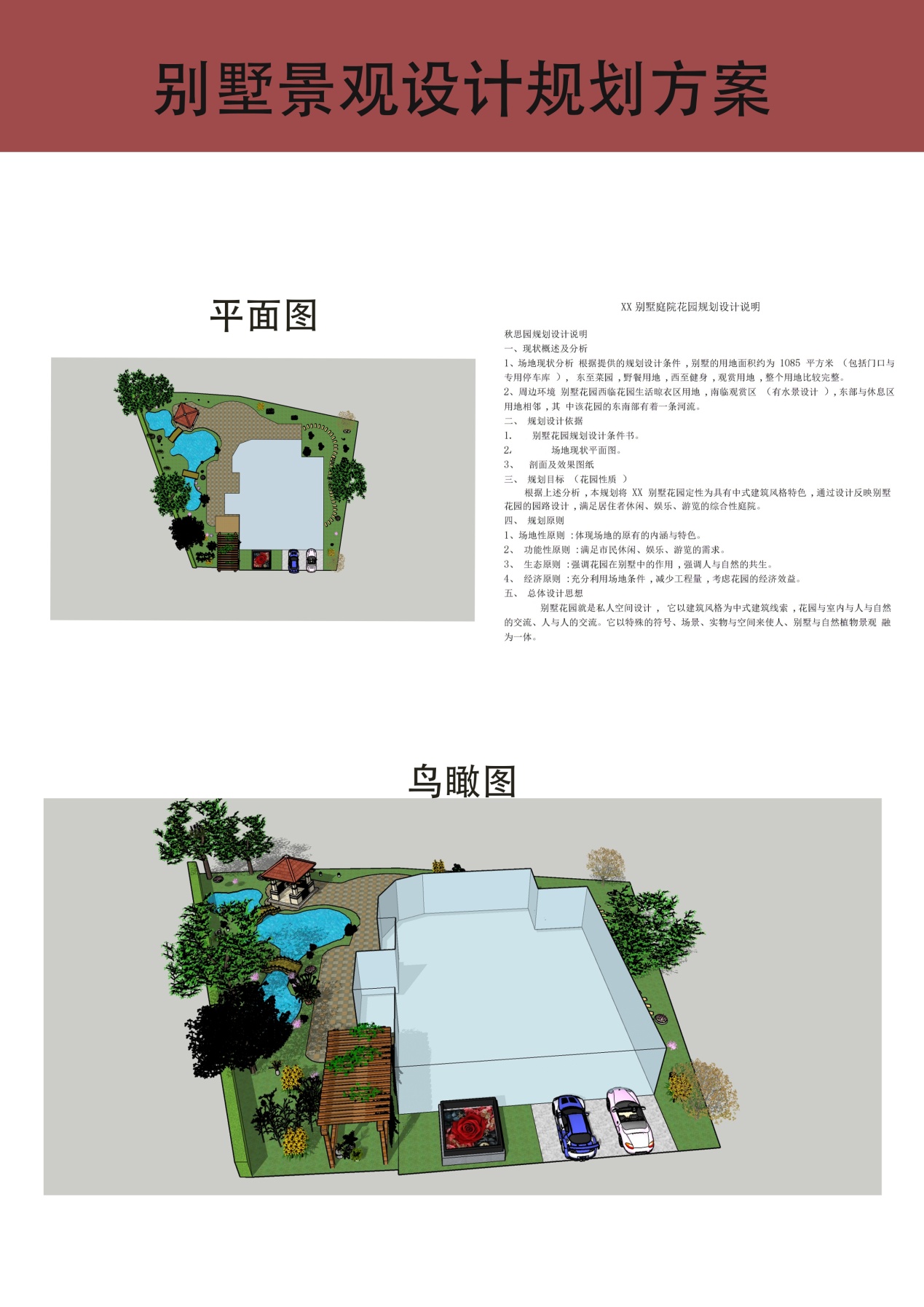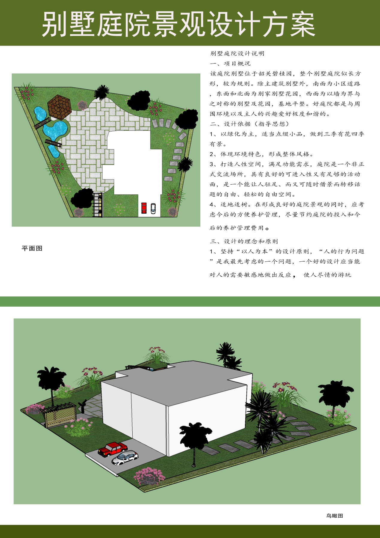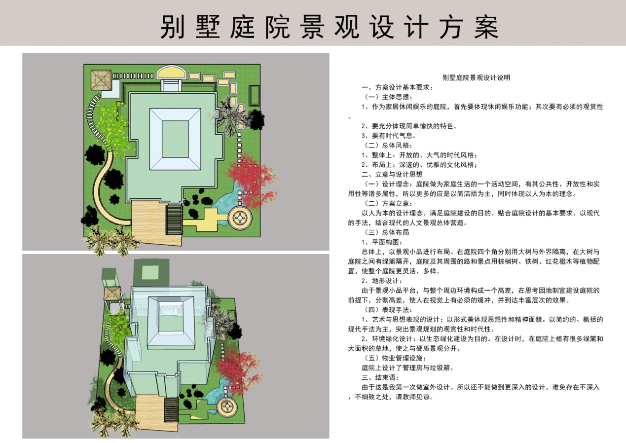 本次作品,需要同学运用Photoshop图像处理软件排版、Sketch up三维模型软件、CAD施工图制作软件三个软件共同操作,完成景观规划设计方案的设计与表现。