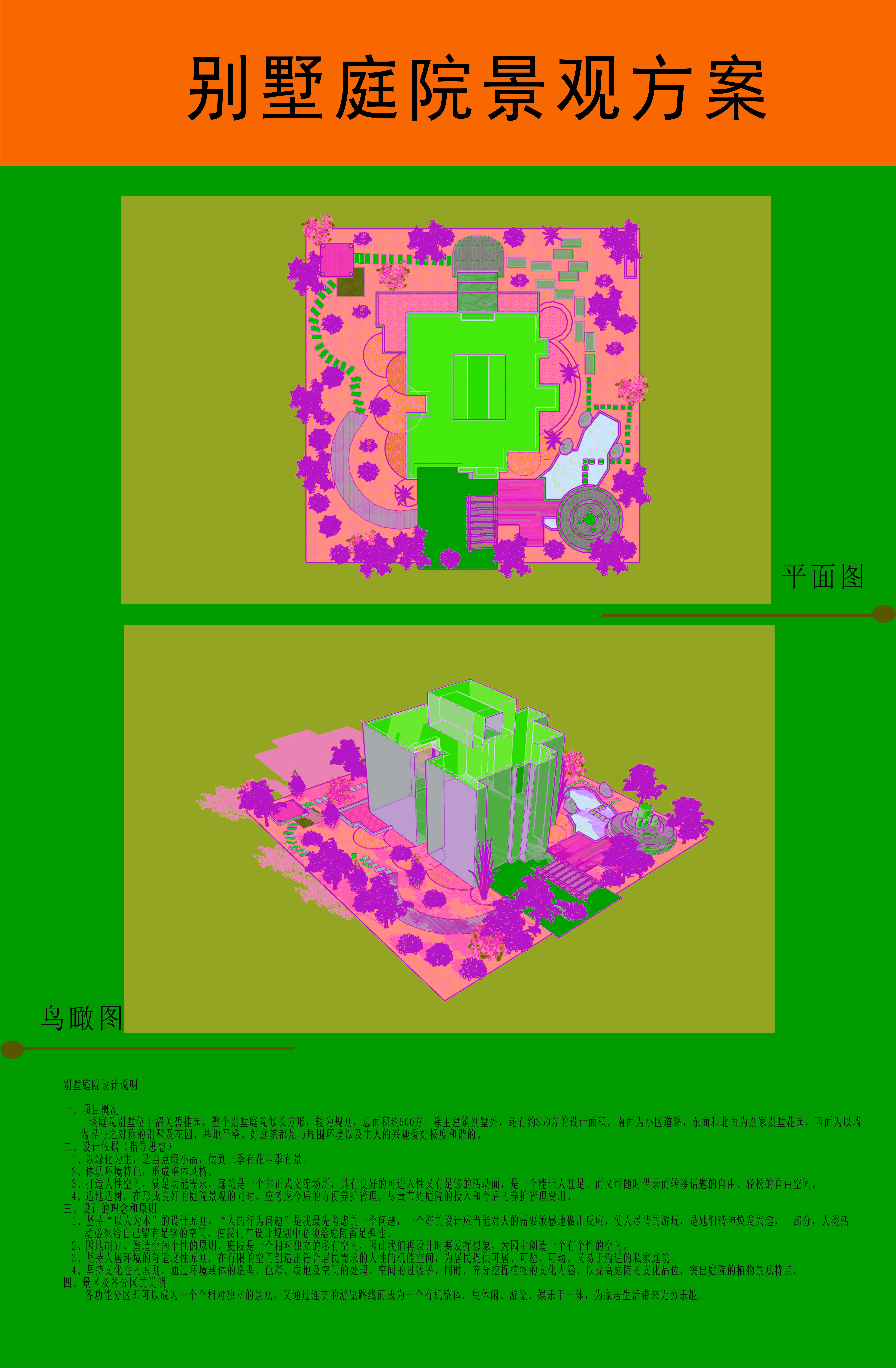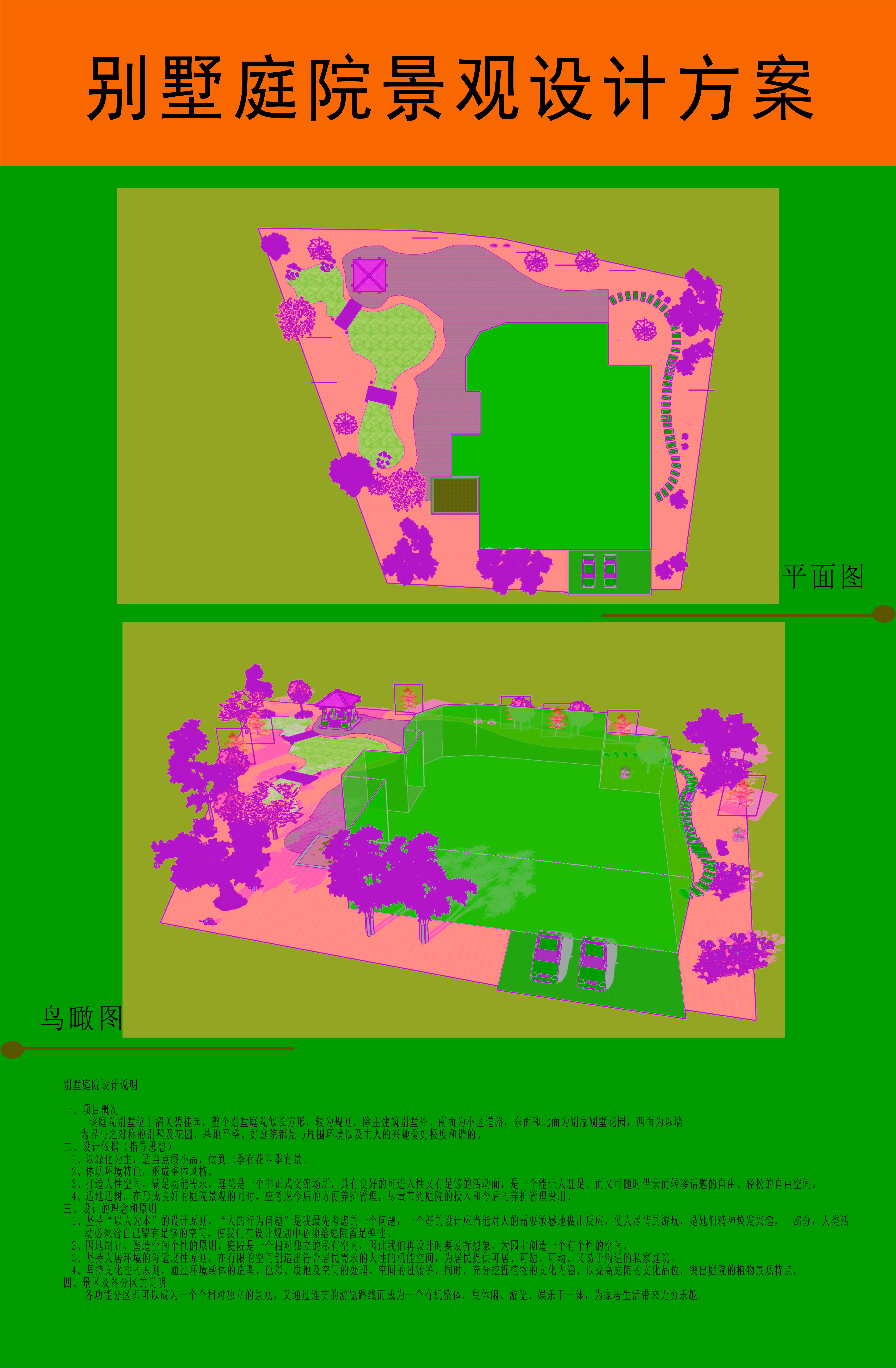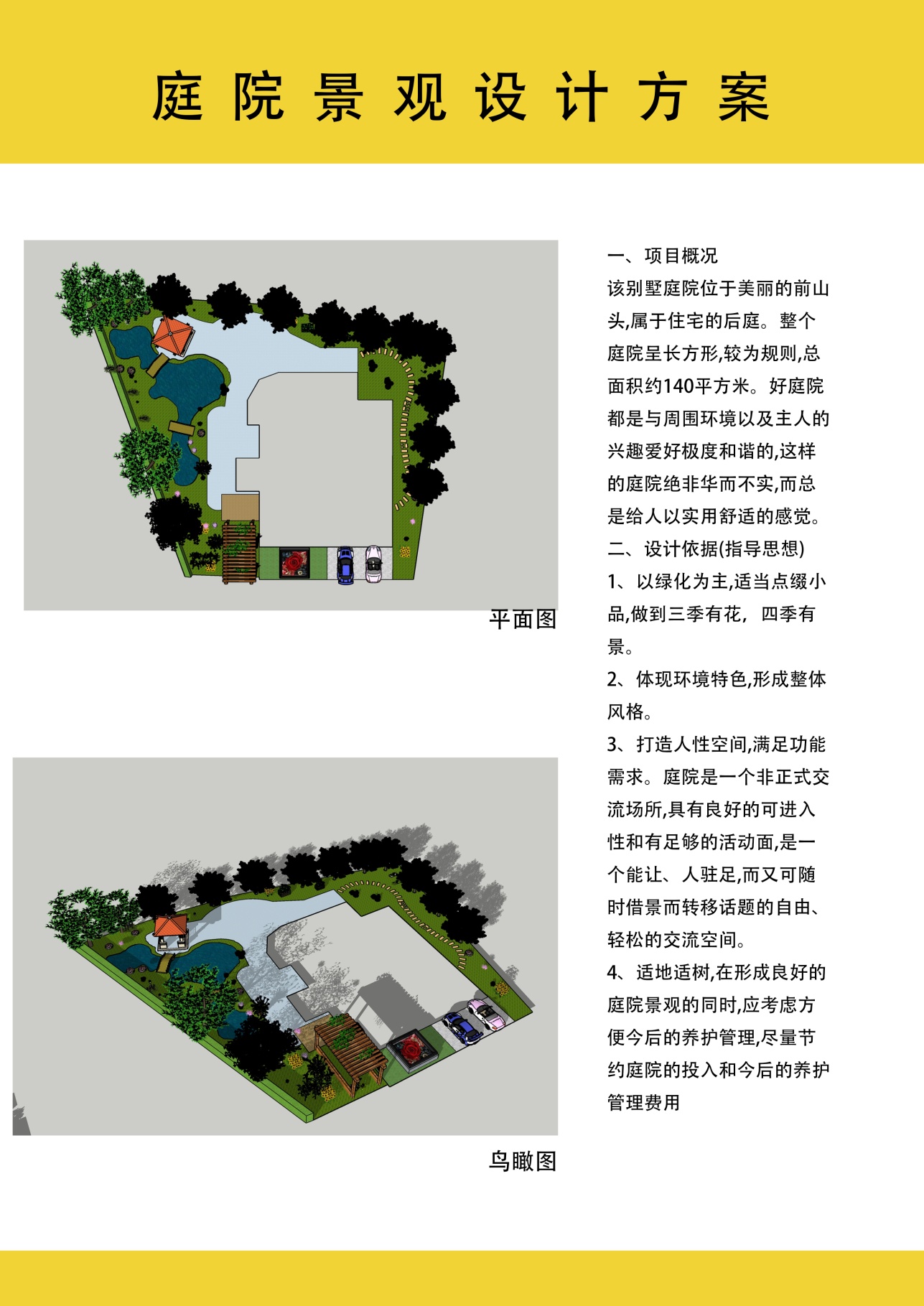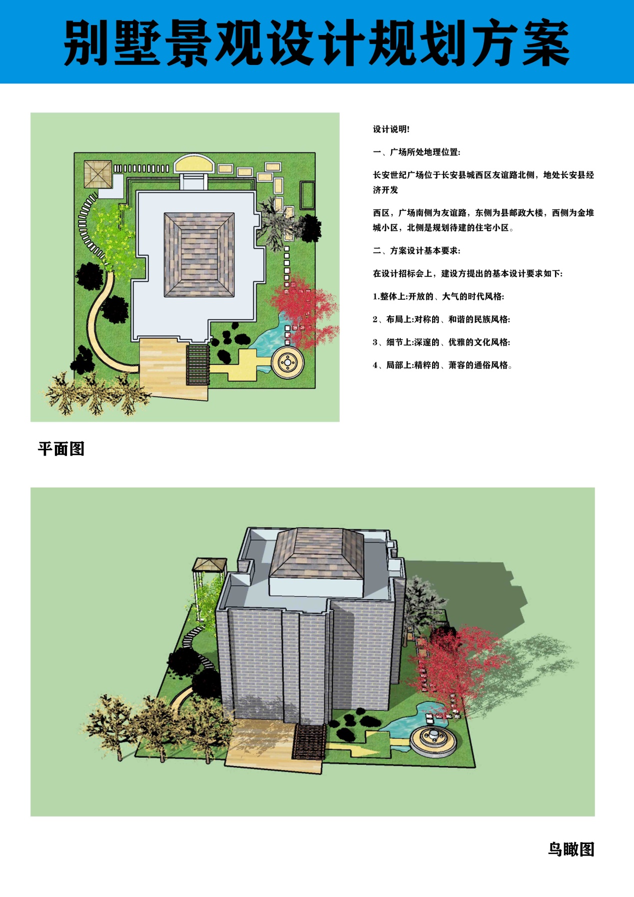 本次作品,需要同学运用Photoshop图像处理软件排版、Sketch up三维模型软件、CAD施工图制作软件三个软件共同操作,完成景观规划设计方案的设计与表现。