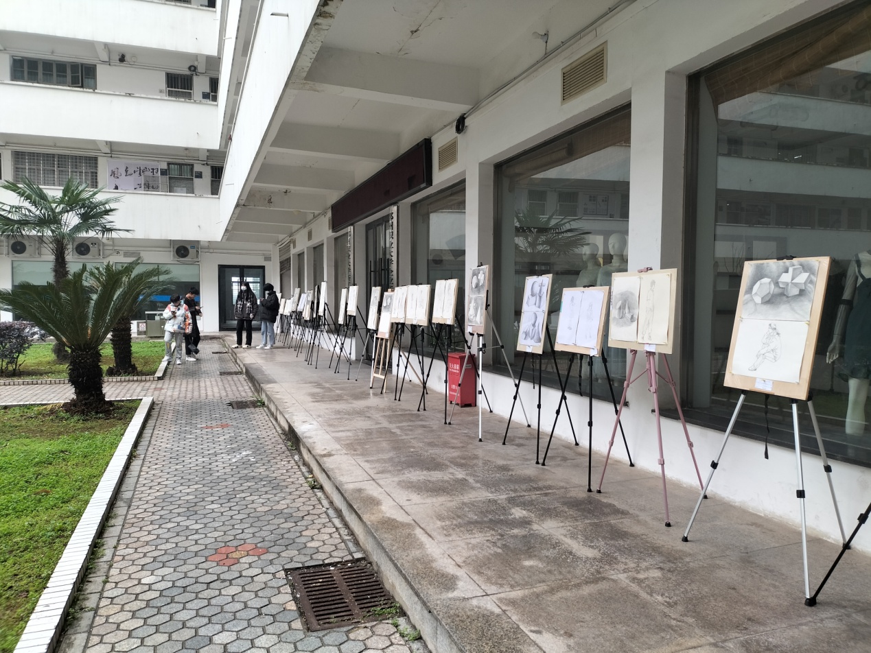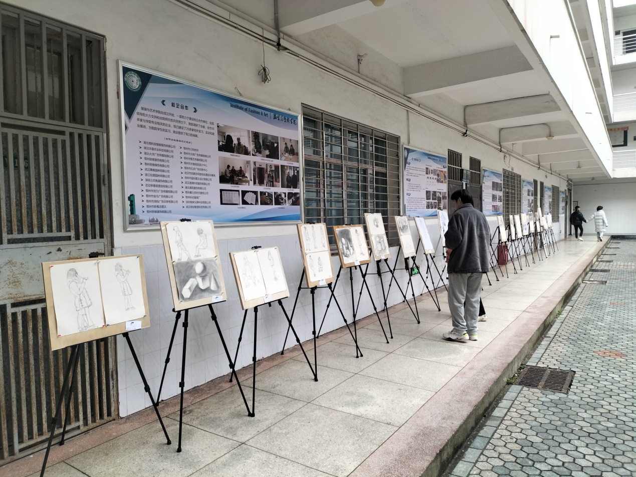 2021年12月15-16日在三号教学楼四区一楼,展出了2021级服装与服饰设计专业两个班级同学的课程作品,本课程有64学时、分别学习素描和人物速写两部分内容,本课程由艾新春教师授课。