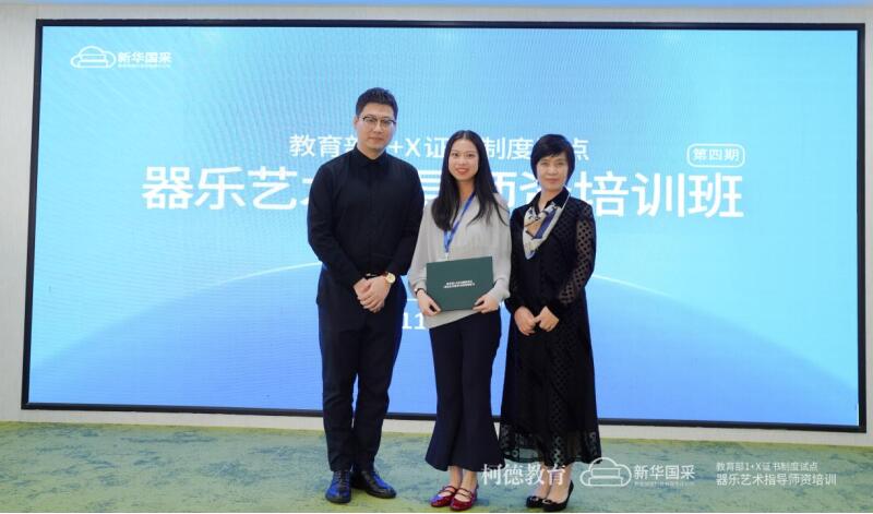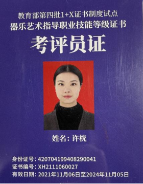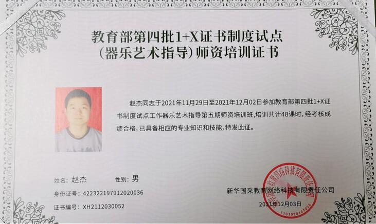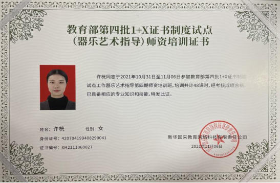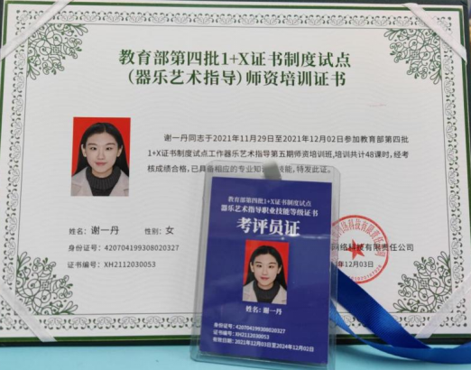 (音乐教室专业教师获取“1+X器乐艺术指导师资培训证书、考评员证”)