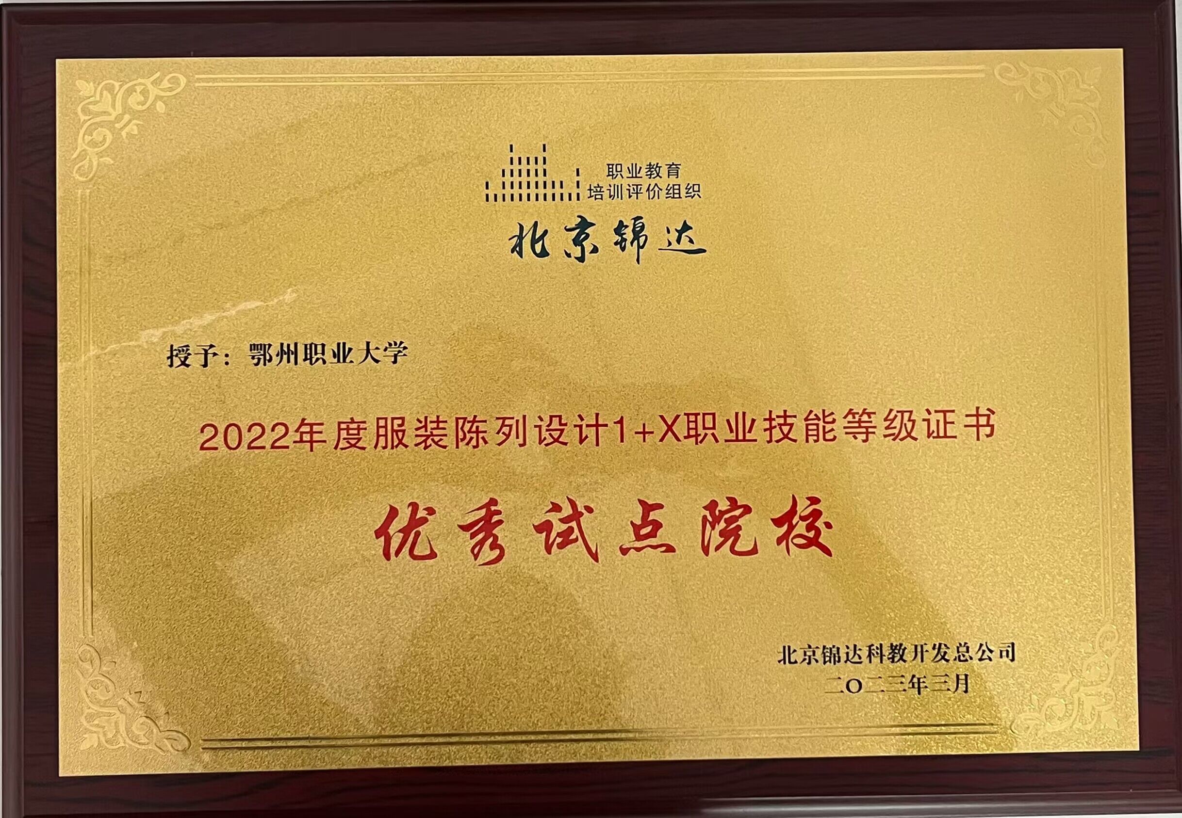 鄂州职业大学艺术学院服装与服饰设计专业于2022年11月20日开展服装陈列设计“1+X”职业技能等级认证考试,首批参考学生共50人。我校获得“优秀试点院校”称号,艺术学院服装与服饰设计专业教研室主任高湘红老师获得“优秀指导教师”称号,吴金燕老师获得“优秀考务工作者”称号。