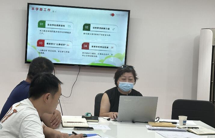 教研室主任汇报新学期准备工作,暑期参加国培相关教师依次发言。