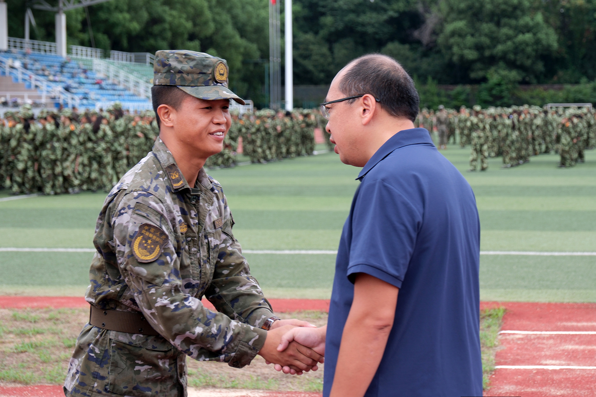 训练场上,院长张磊对全体参训学生表示亲切慰问,对同学们克服困难积极参加训练给予充分肯定,鼓励他们要继续发扬不怕苦、不怕累的精神,严格要求自己,团结同学,认真按照教官的要求,高标准完成训练任务。同时,还要求学院带队领导和教师为参训学生和教官提供细致、周到的服务,对身体不适的学生要及时送医。并对参训教官表示亲切慰问。