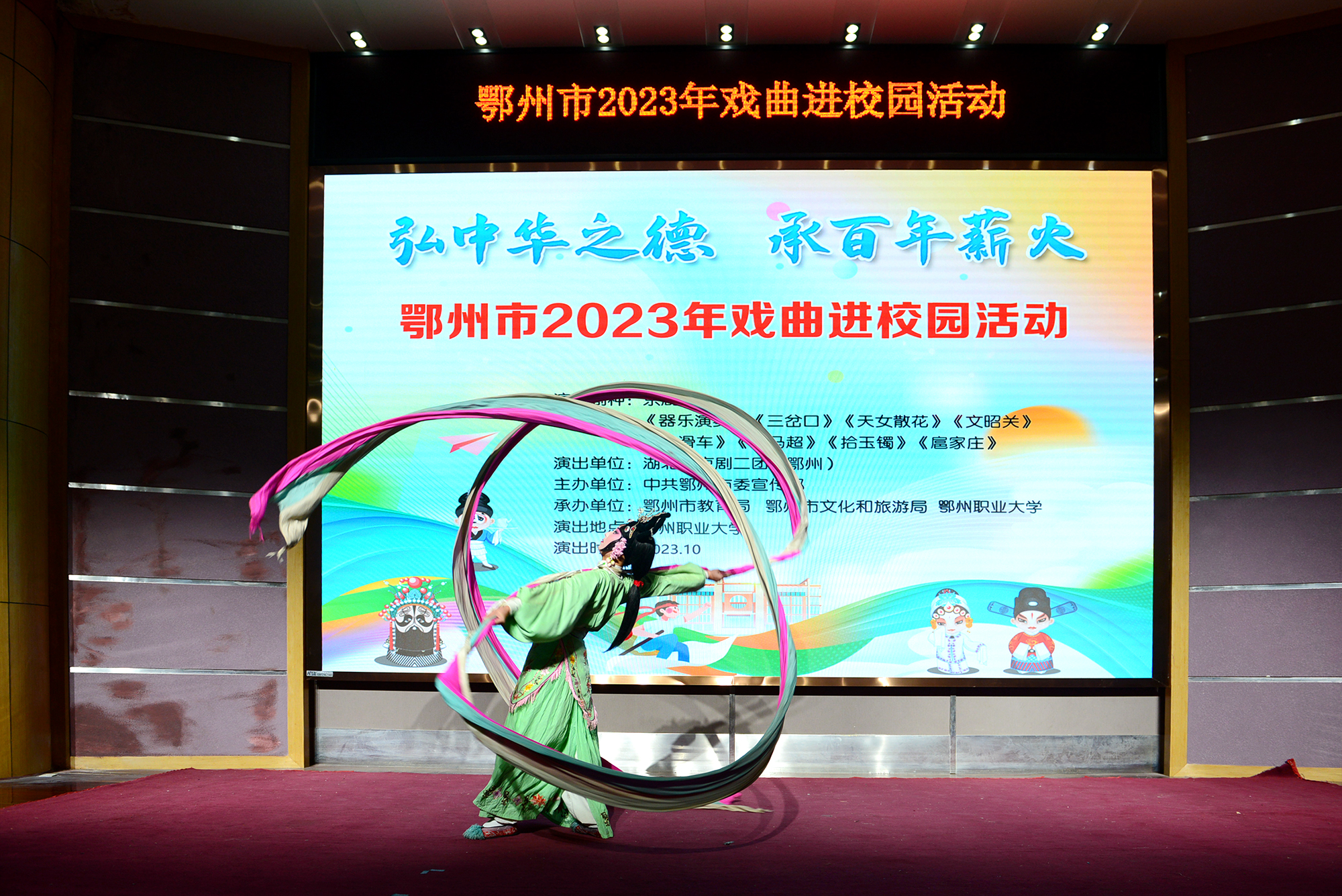通讯员:田慧报道1011日下午,由中共鄂州市委宣传部主办,鄂州市教育局、鄂州市文化和旅游局、鄂州职业大学承办的2023戏曲进校园活动在我校五号教学楼学术报告厅隆重举行。艺术学院320名师生及各院系戏曲爱好者共同观看了演出。